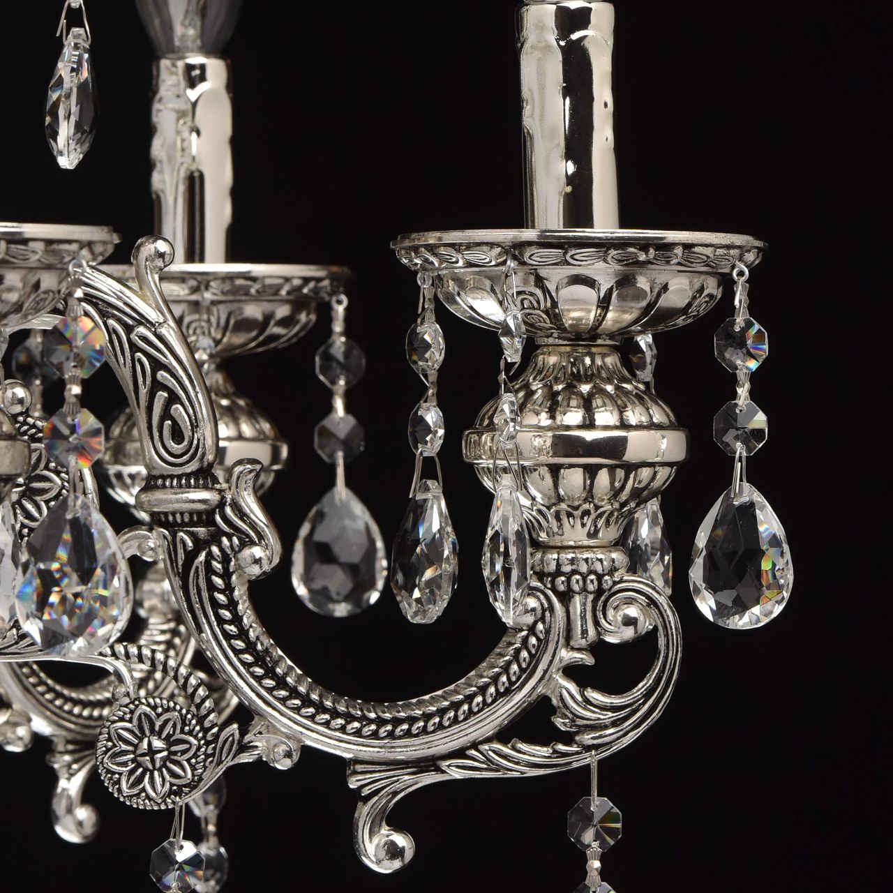 Элегантный дизайн в классическом стиле . Традиционная форма свечи обеспечивает высокие параметры освещенности Хрустальные подвески создают удивительную игру света. Арматура цвета черненого серебра добавляет люстре благородства. Наличие нескольких светильников в семье дает возможность комплексного освещения помещения Великолепная классика по демократичной цене.Стилевые решения интерьера