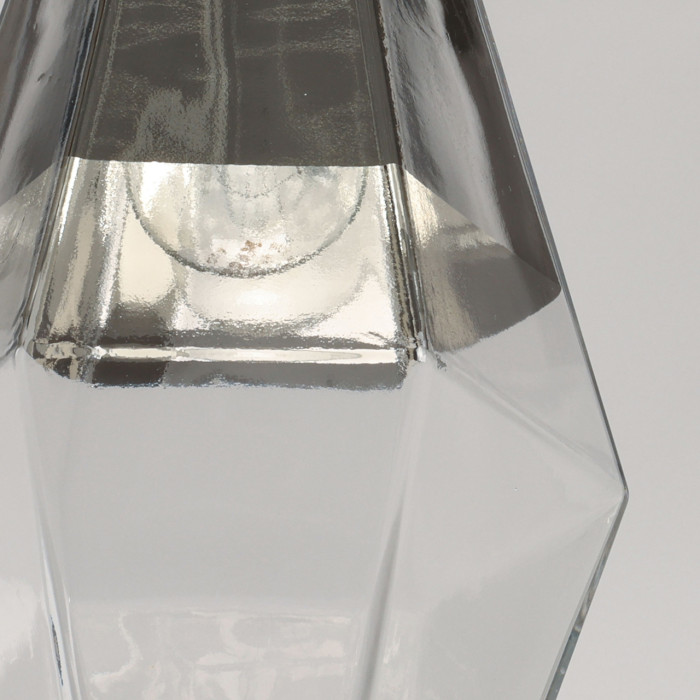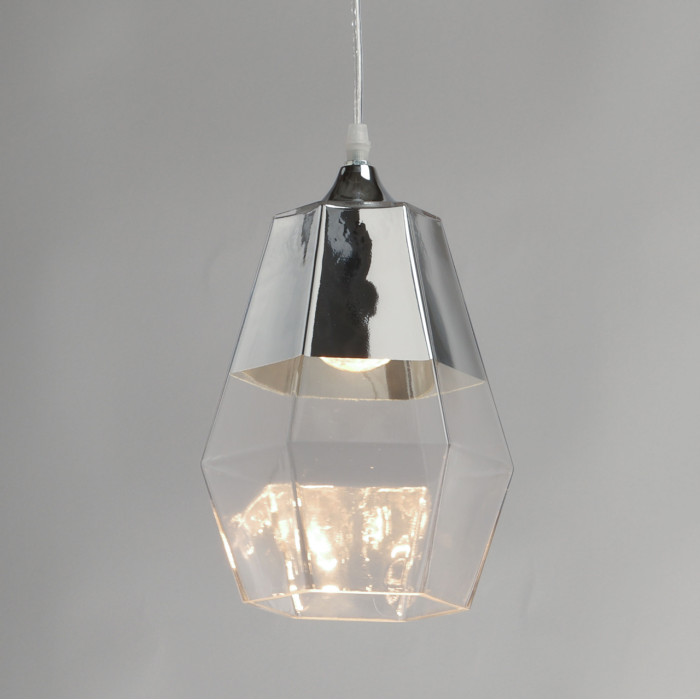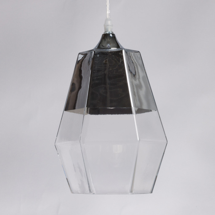 Оригинальный дизайн подвеса обращает на себя внимание своей новизной. Трендовое стекло, имитирующее натуральный оплавленный кварц. Гальваника стекла в цвет хром отражает свет и создает зональное освещение. Возможность устанавливать комфортную высоту.Металлическое основание подвеса гальванизировано в цвет хрома. Плафон выполнен из прозрачного стекла, частично гальванизированного в верхней части в цвет хрома.