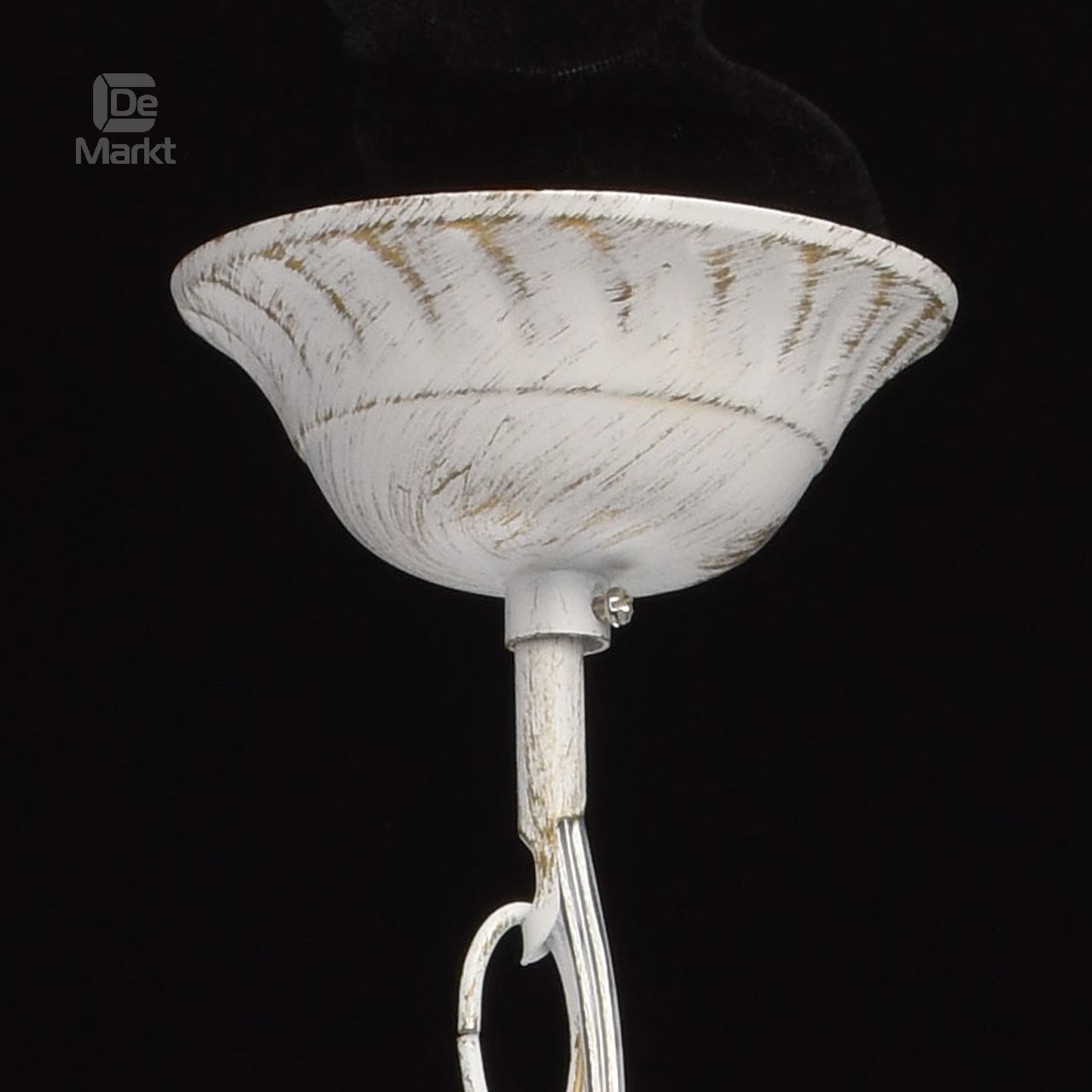 Основание: металл, обработка по технологии хай-лайт - основной слой белый матовый, декоративный слой - золотой, рожки выполнены по технологии проката на роликовом станке, декоративные розетки выполнены по технологии прессования.Тип помещения