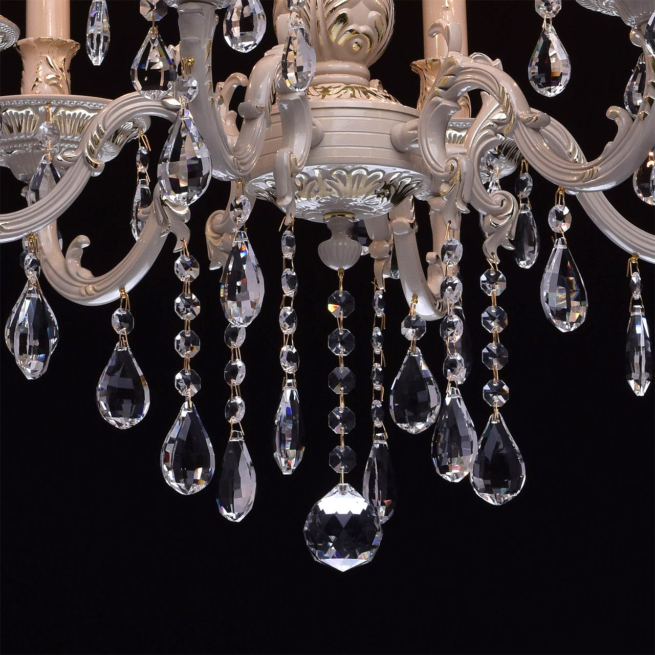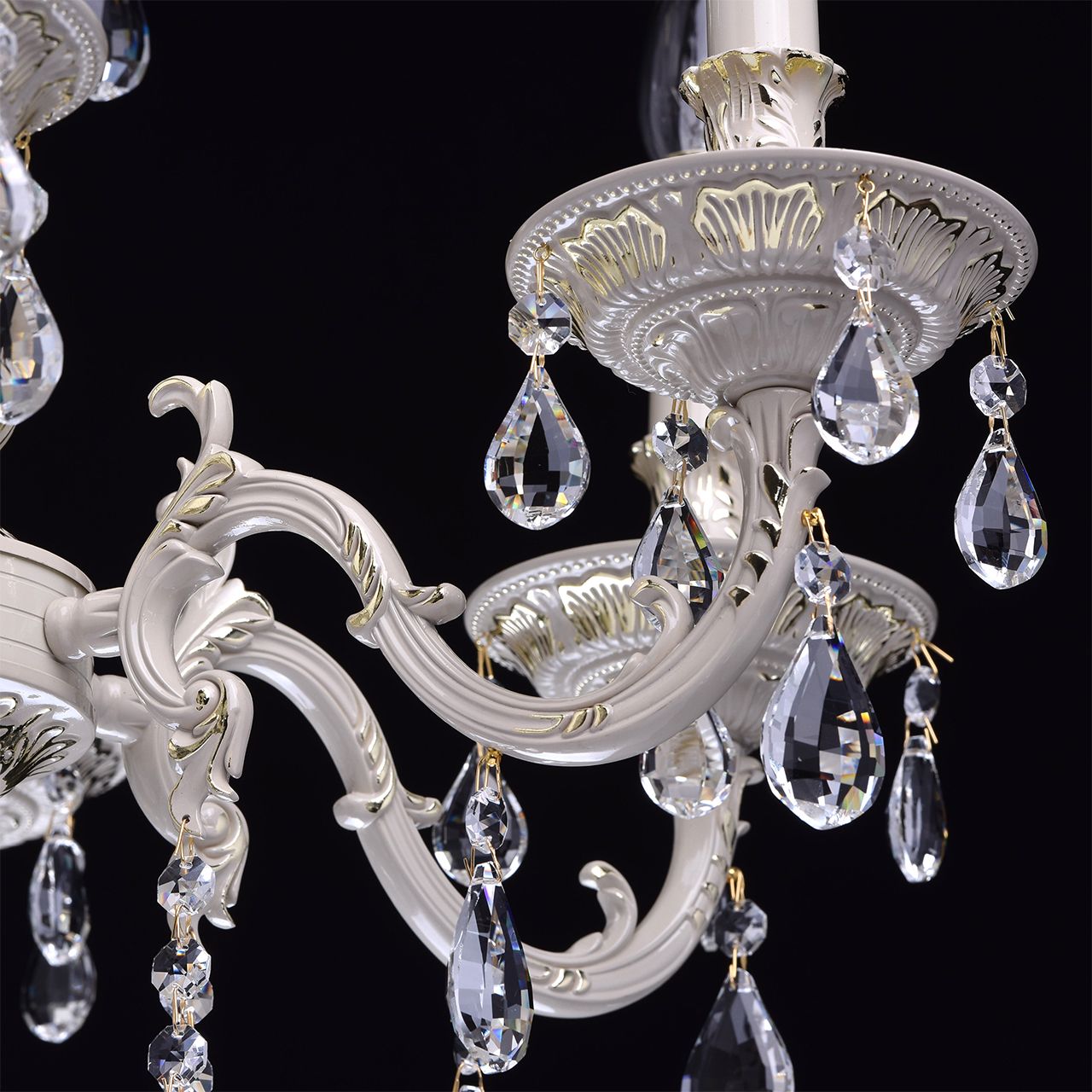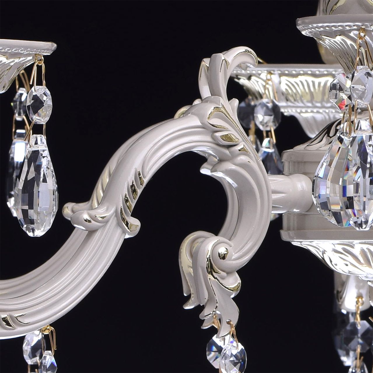 Крашеное металлическое основание цвета слоновой кости с фисташковым оттенком, декоративные подвески из хрусталяТехнология производства