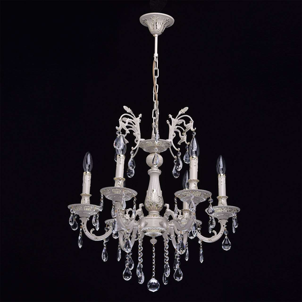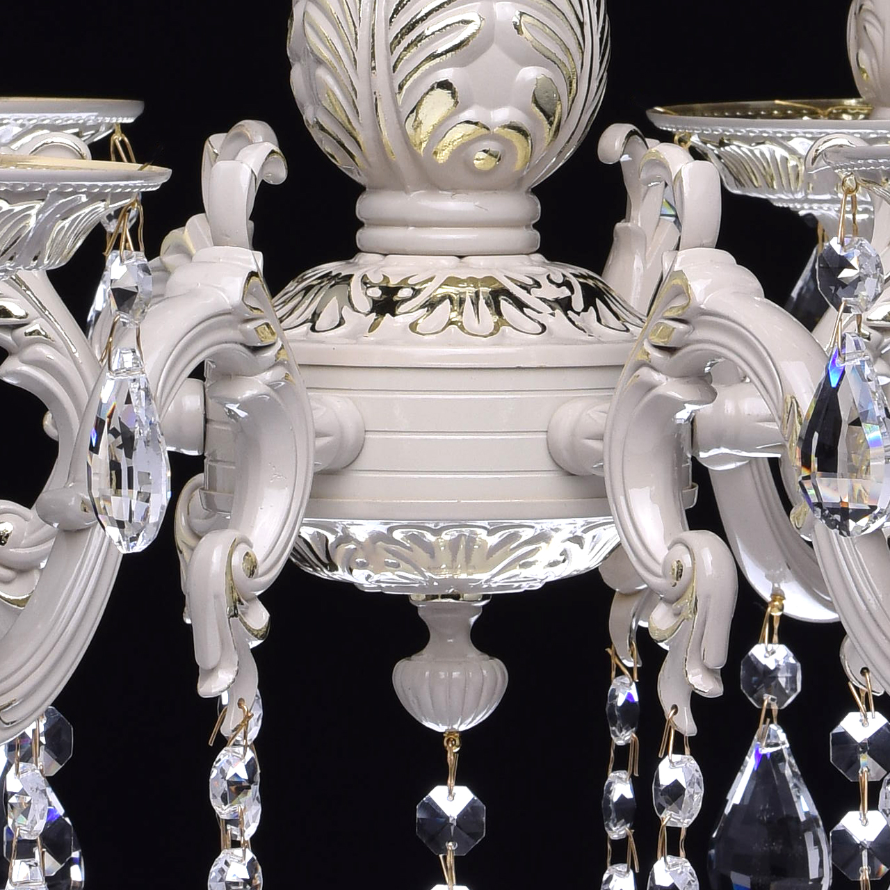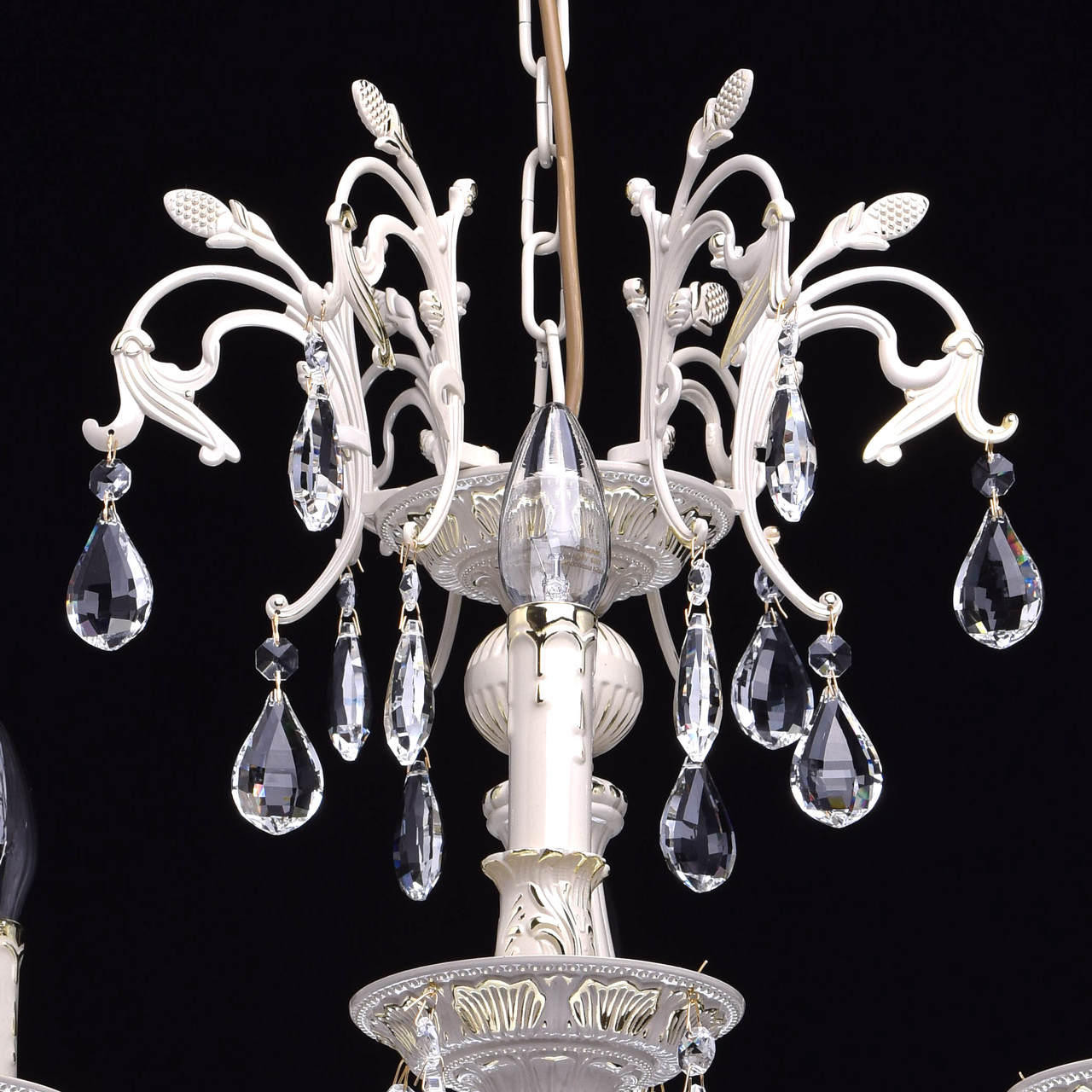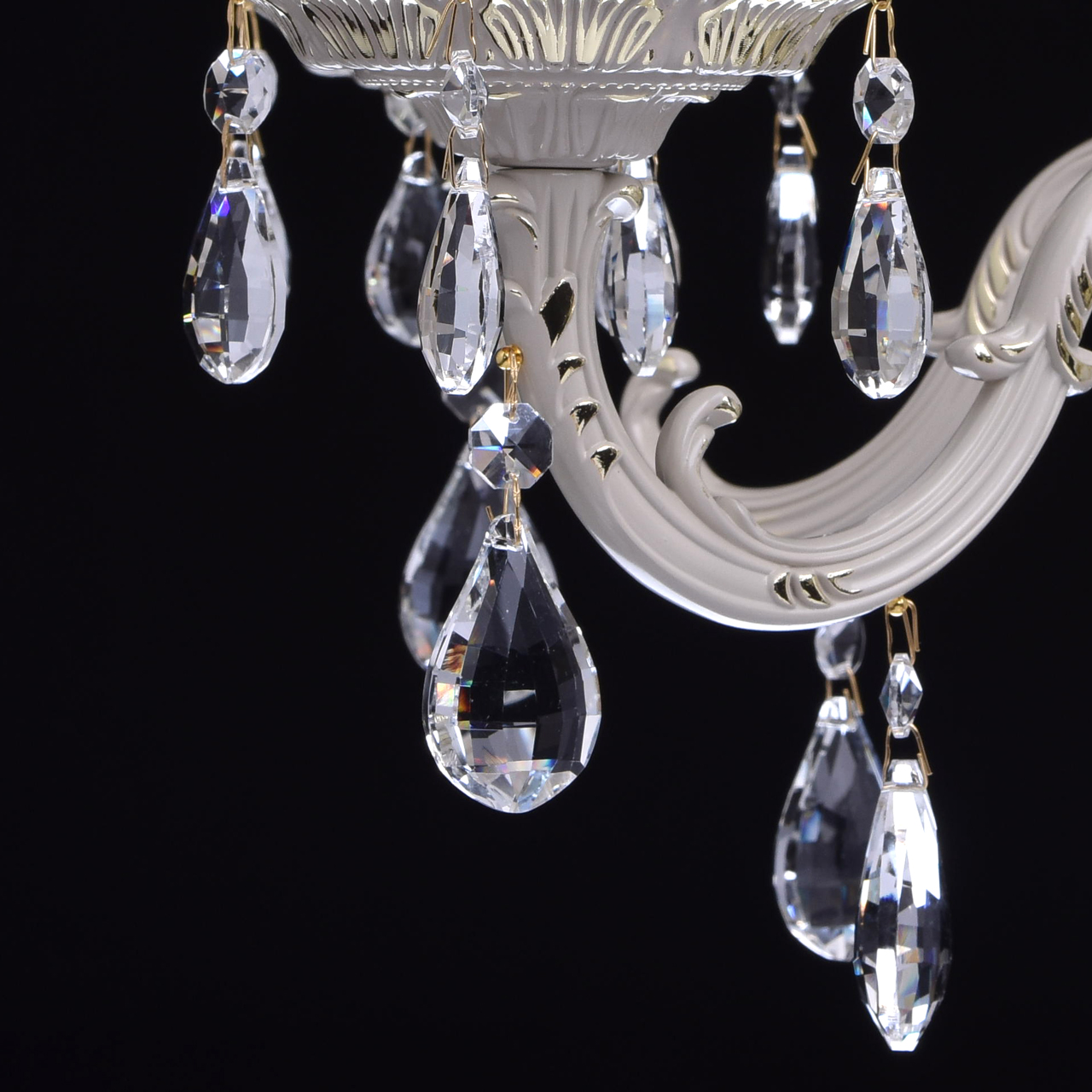 Крашеное металлическое основание цвета слоновой кости с фисташковым оттенком, декоративные подвески из хрусталяТехнология производства