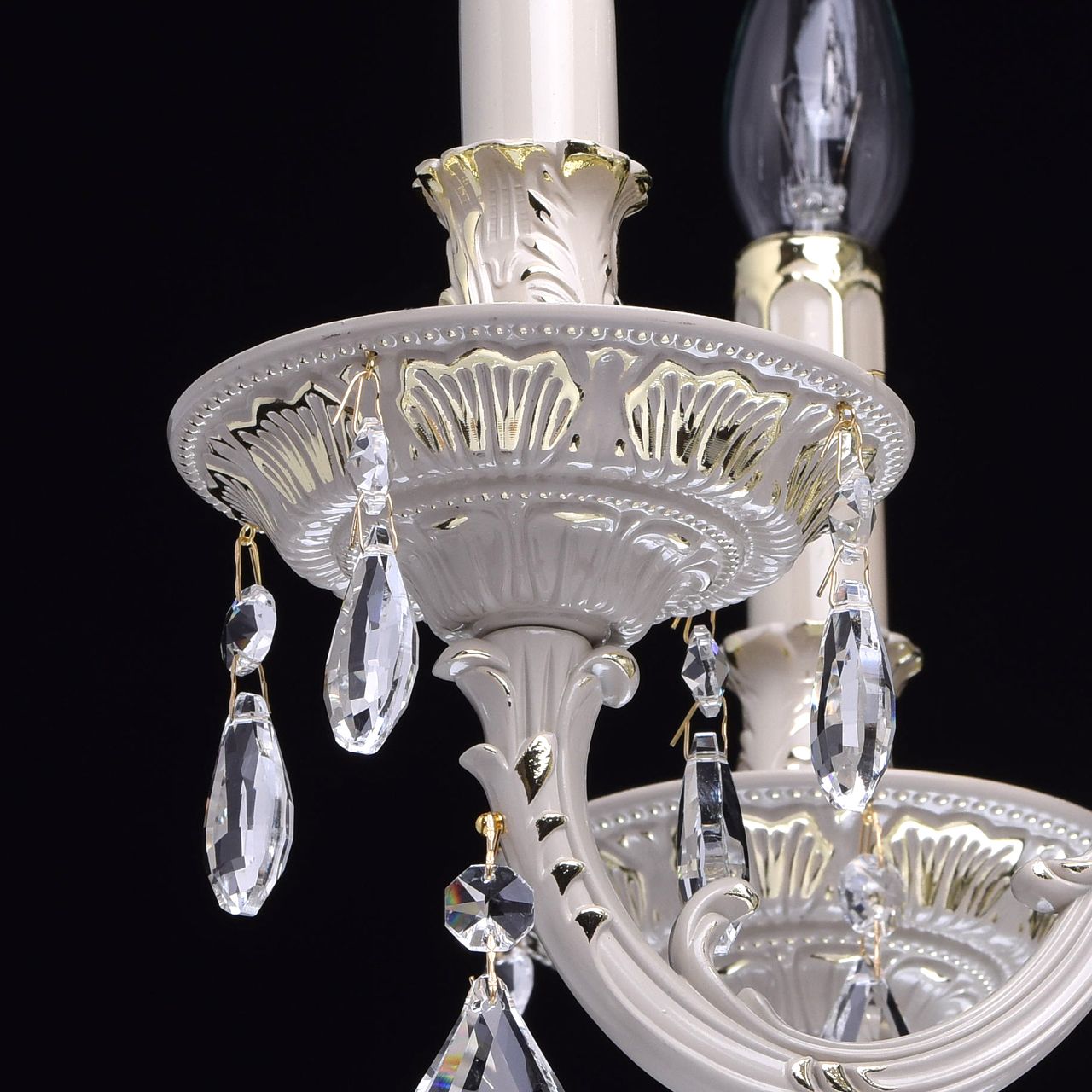 Светильник из коллекции Свеча чрезвычайно привлекателен по дизайну. Хрупкие стебли и изогнутые линии вьющегося растения изображены в мельчайших подробностях и выглядят естественно и натурально. Металлическая арматура цвета слоновой кости с фисташковым оттенком. Такой достаточно редкий цвет придаёт светильнику изысканность и очарование в сочетании с декоративными позолоченными элементами основания. Хрустальные подвески добавляют в композицию ослепительную игру света.Преимущества модели