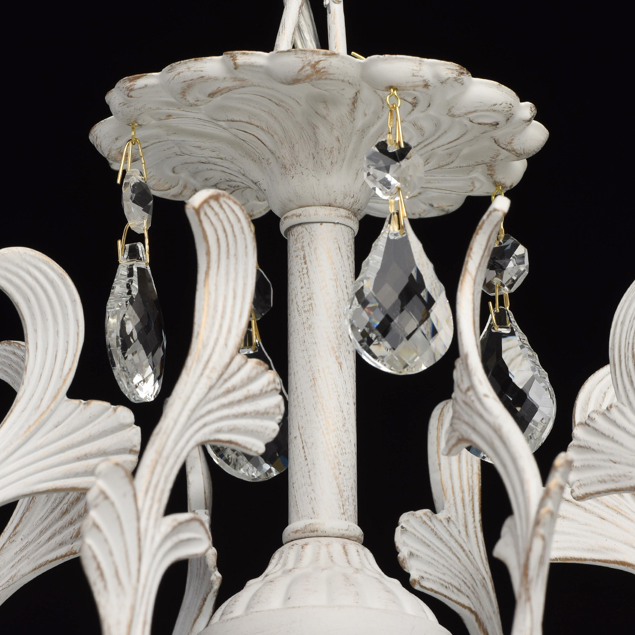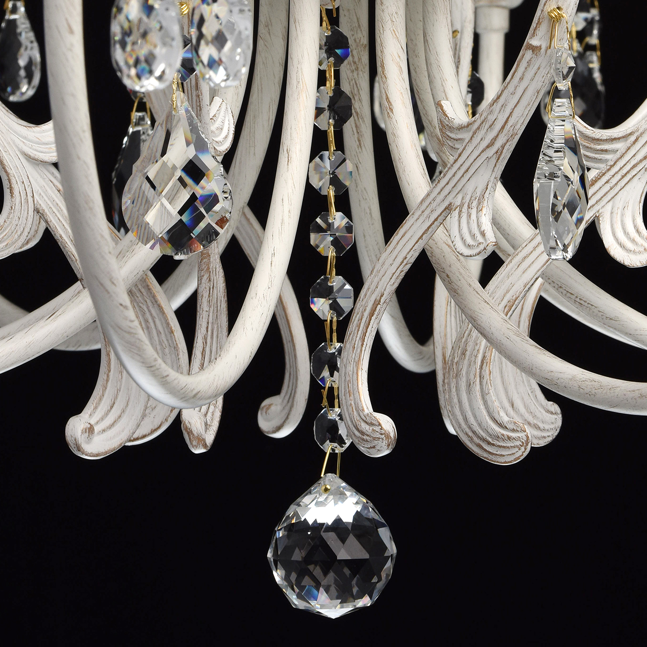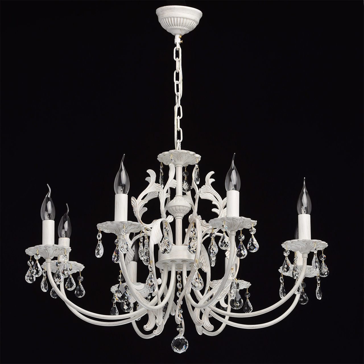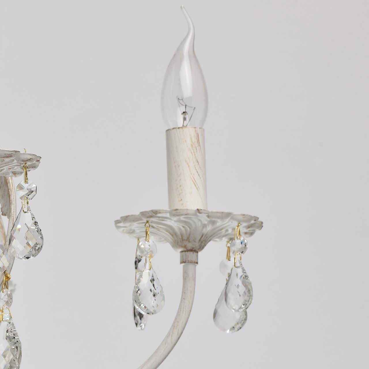 Роскошный дизайн в классическом стиле Классическая форма плафонов-свечей имеет высокие параметры освещения – идеально для больших помещений Хрустальные подвески создают волшебную игру света Премиальный светильник по привлекательной цене Благородный белый цвет с эффектом патинирования цвета золота позволяет люстре встроиться в интерьеры выполненные в любой цветовой гамме. 2 варианта по количеству рожков дают возможность осветить смежные помещения в одном стидеСтилевые решения интерьера