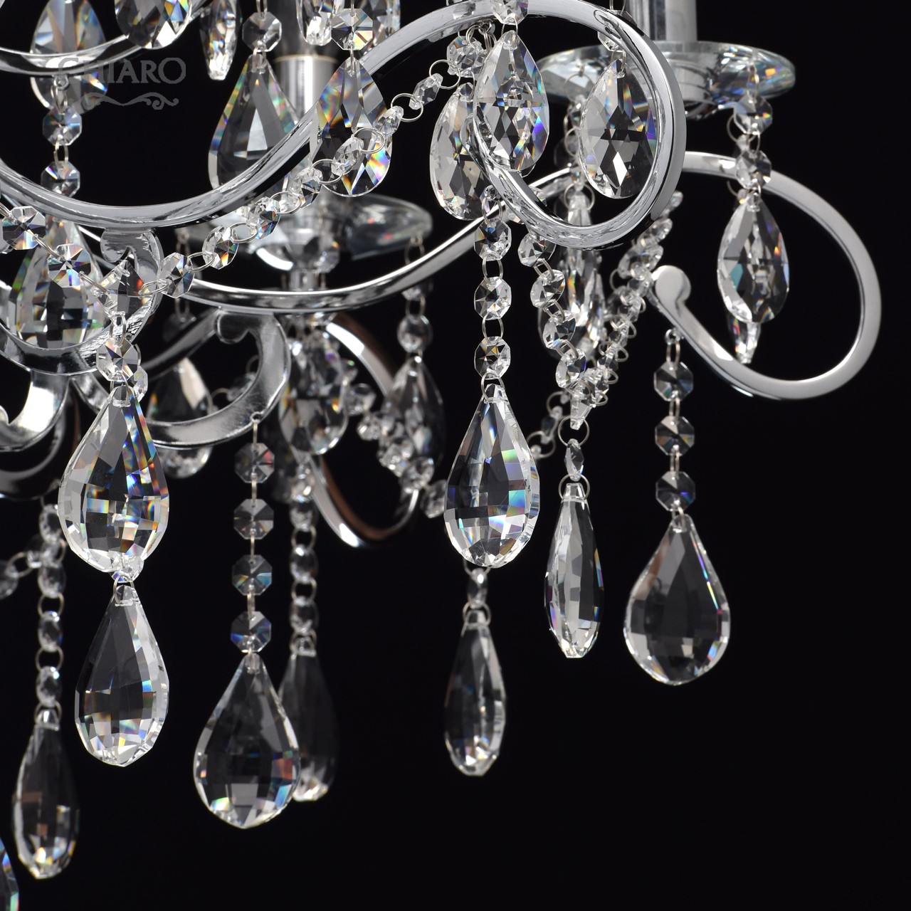 Роскошный дизайн, который достигается за счет оригинальной формы светильника. Светильники отлично подойдет для размещения в межлестничном пространстве (Второй свет). Выразительное покрытие металла в цвет хрома. В декоре используется высококачественный хрусталь. Мягкое распределение светового потока.Стилевые решения интерьера