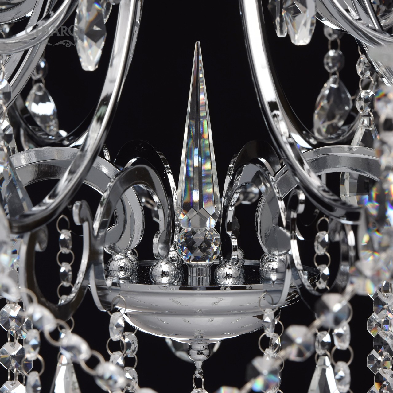 Люстра из коллекции Сюзанна ослепляет своим великолепием. Металлическое основание цвета хрома гармонично сочетается с декоративными элементами из хрусталя. Сверкая в лучах света, хрустальные подвески и камни завораживают и приковывают внимание, заставляя наблюдать за заманчивыми отблесками и переливами – комната наполняется волшебным сиянием! В самом сердце композиции – декоративный кристалл из массива хрусталя. Если вы желаете оформить обстановку в стиле ампир, то этот светильник превосходно впишется в интерьер.Преимущества модели