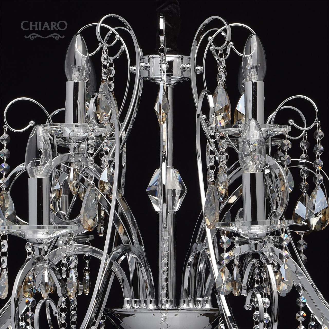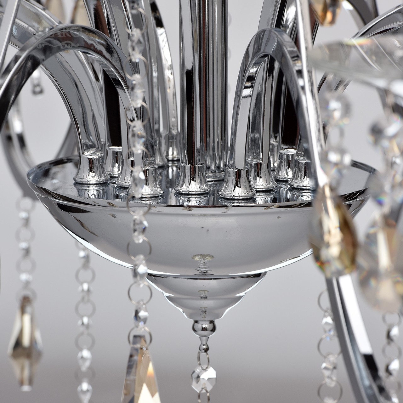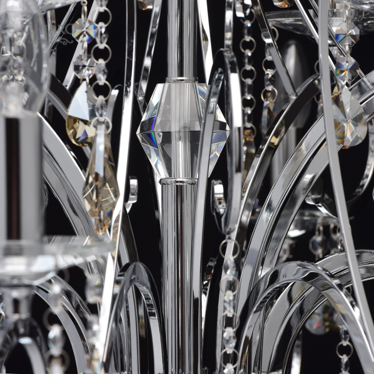 Праздничные, фантастические переливы люстры из коллекции Сюзанна создадут поистине волшебную и сказочную обстановку в интерьере классического стиля или стиля модерн. Металлический блеск основания сложной структуры цвета хрома удачно смотрится в дуэте с хрустальным декором. Множество мелких и крупных хрустальных капель ослепляют своим мерцанием – идеальный светильник для нестандартных натур, любящих сочетание романтики и роскоши.Преимущества модели