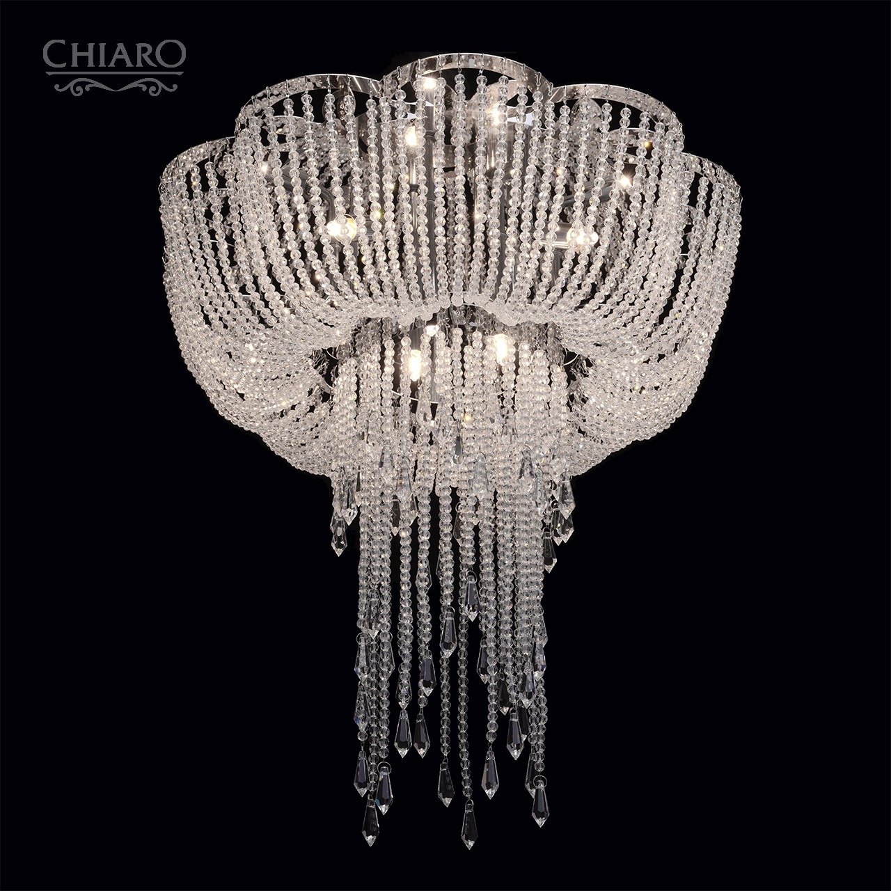 Оригинальный современный гламурный дизайн. Высокие параметры освещенности. Качественное исполнение всех элементов. Необыкновенная игра света за счет подвесок из хрусталя.Стилевые решения интерьера