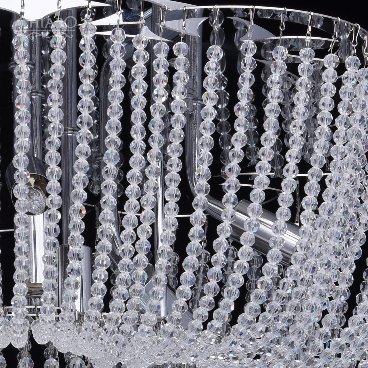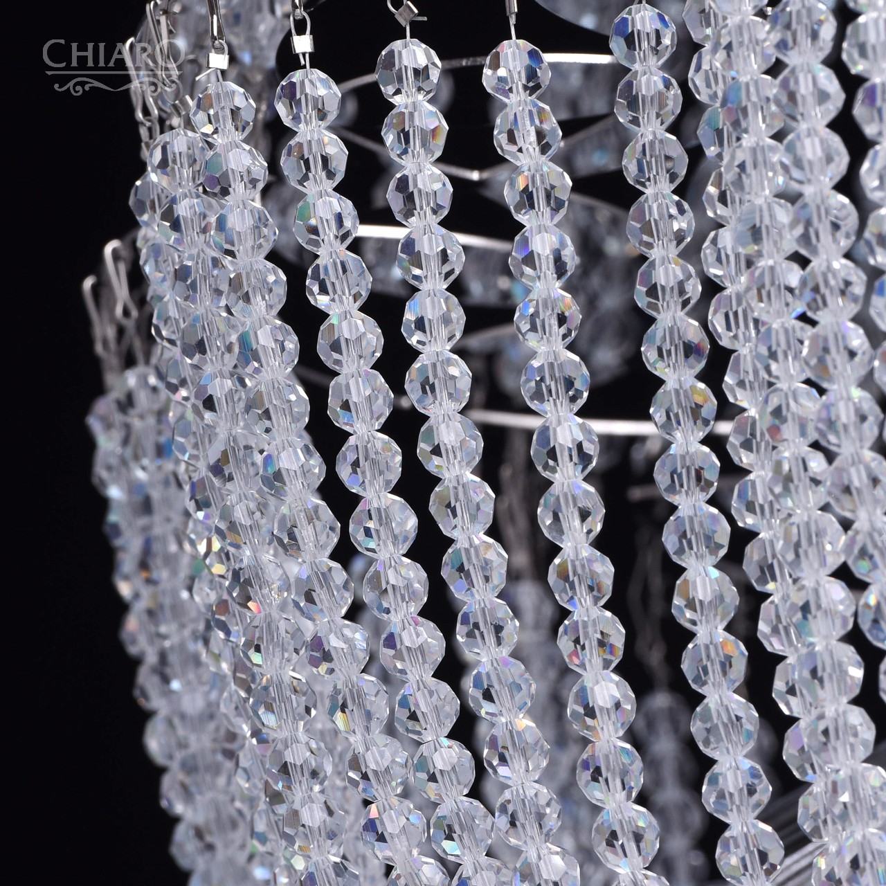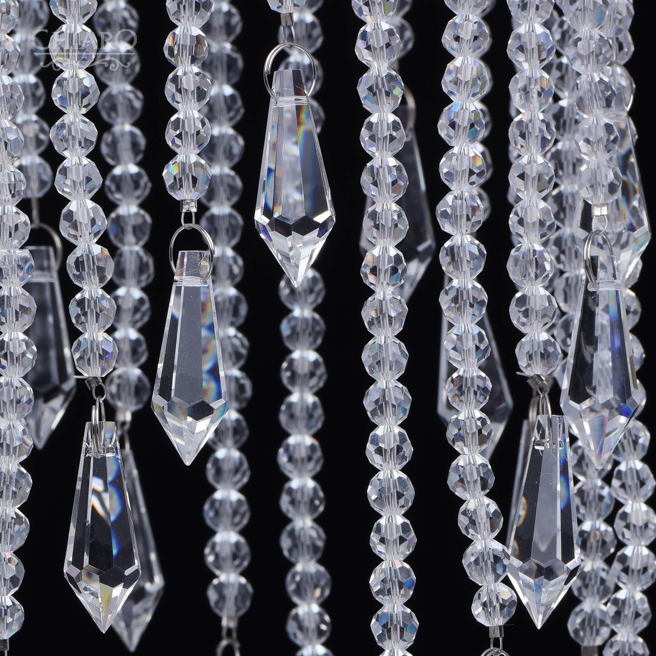 Арматура светильника выполнена из отполированной нержавеющей стали. В декоре светильника использованы хрустальные бусы, подобранные по размеру с ювелирной точностью и хрустальные подвески призмовидной формы.Тип помещения