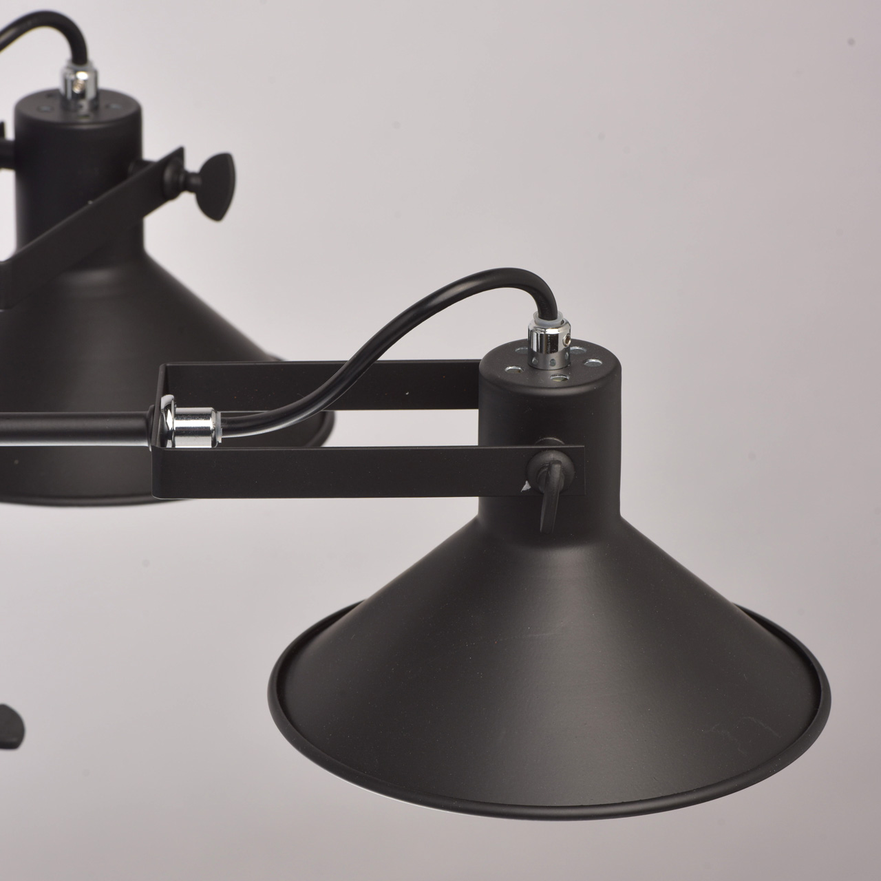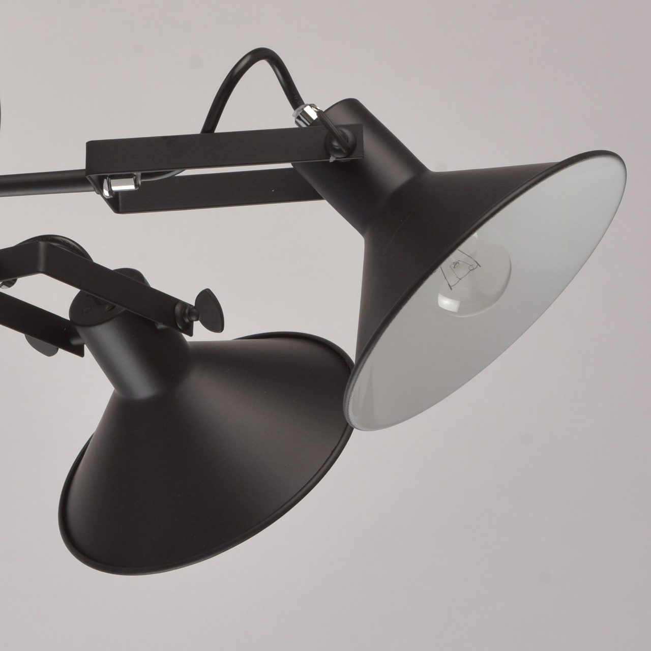 Дизайн светильника выполнен в актуальном индустриальном стиле. Универсальный черный цвет и минималистичный конструктив модели на пике моды. Поворотные механизмы плафонов обеспечивают угол поворота 180 градусов и позволяют устанавливать комфортное направление светового потока.Стилевые решения интерьера