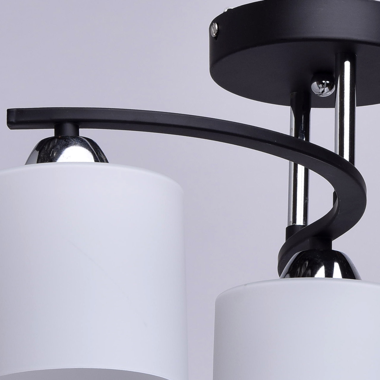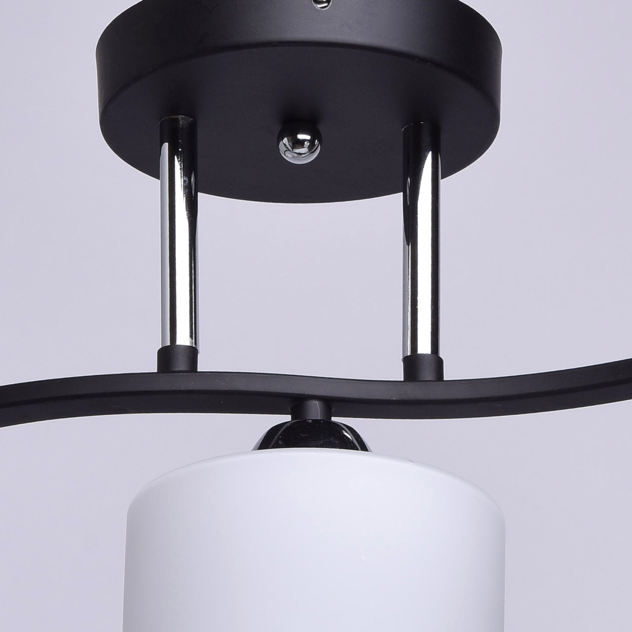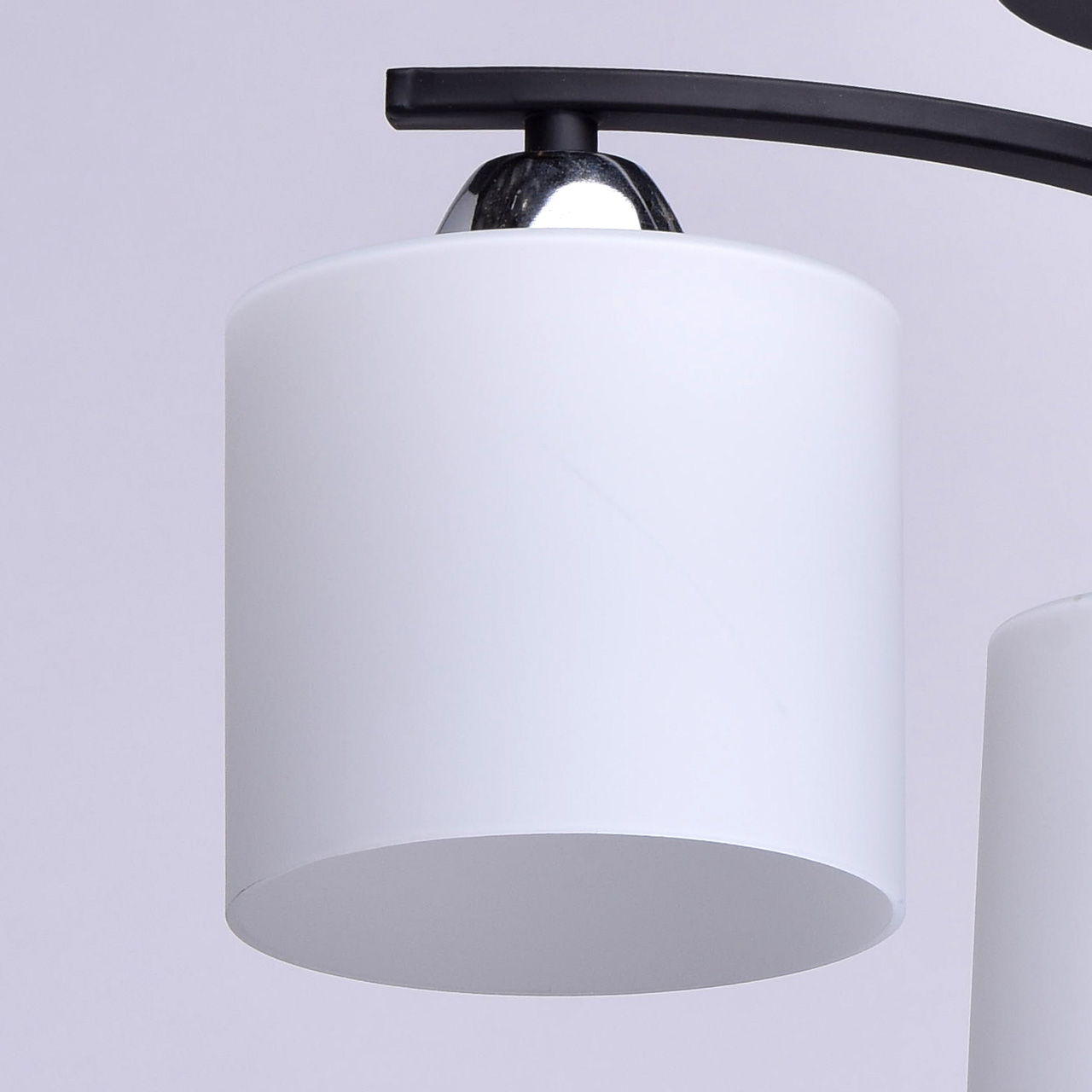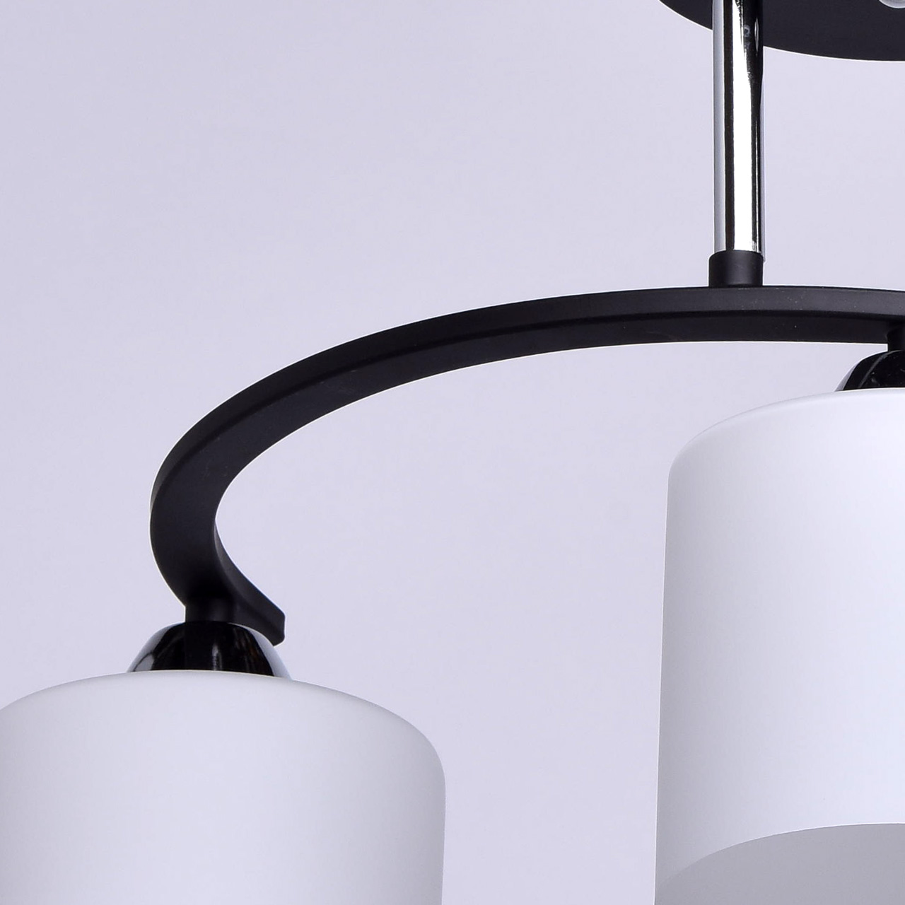 Арматура выполнена из сплава железа. Основание и рожки окрашены в черный цвет, штанги гальванизированы в цвет хрома. Светильник декорирован стеклянными плафонами, обработанными по технологии пескоструйного матирования.Тип помещения