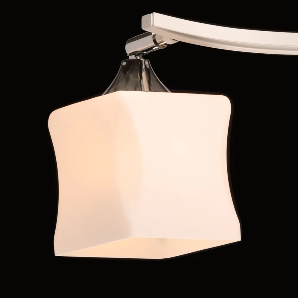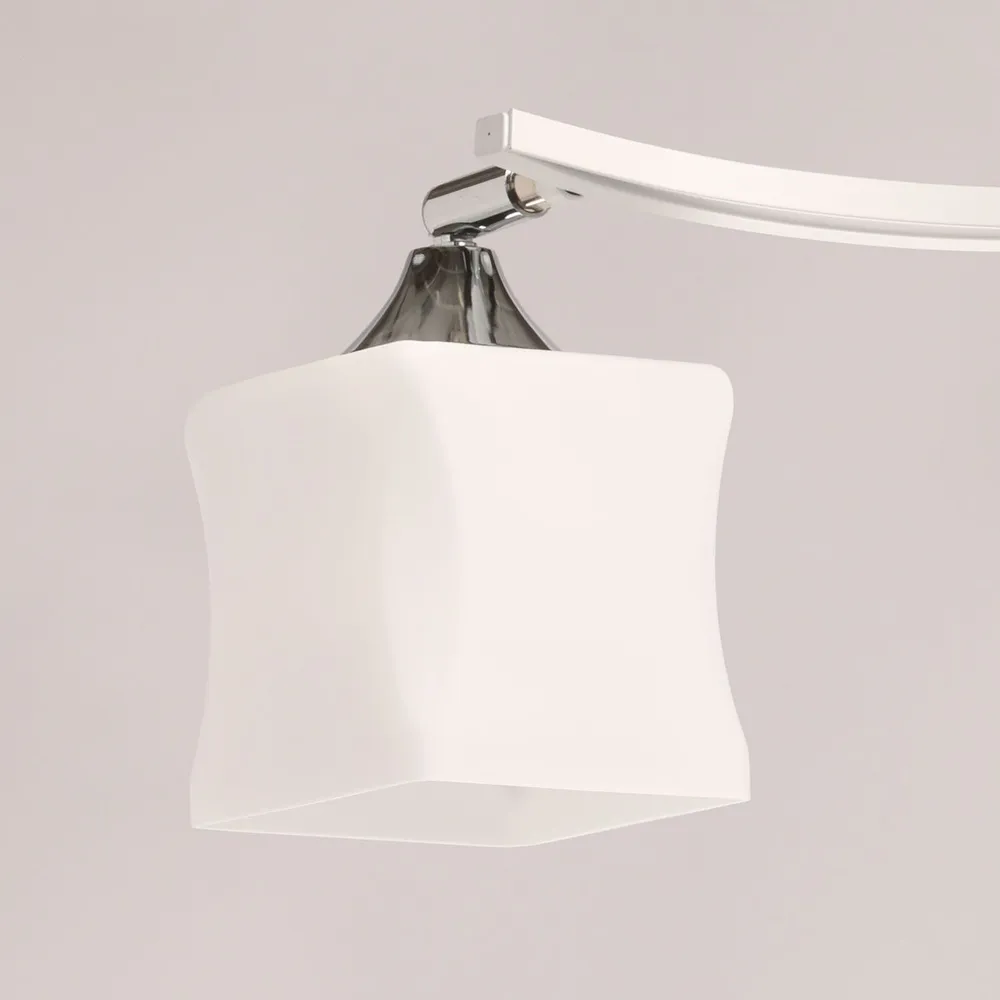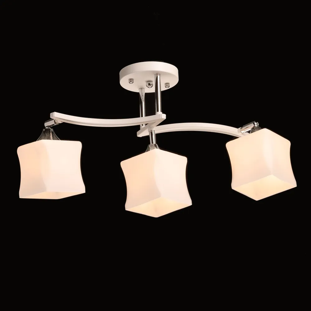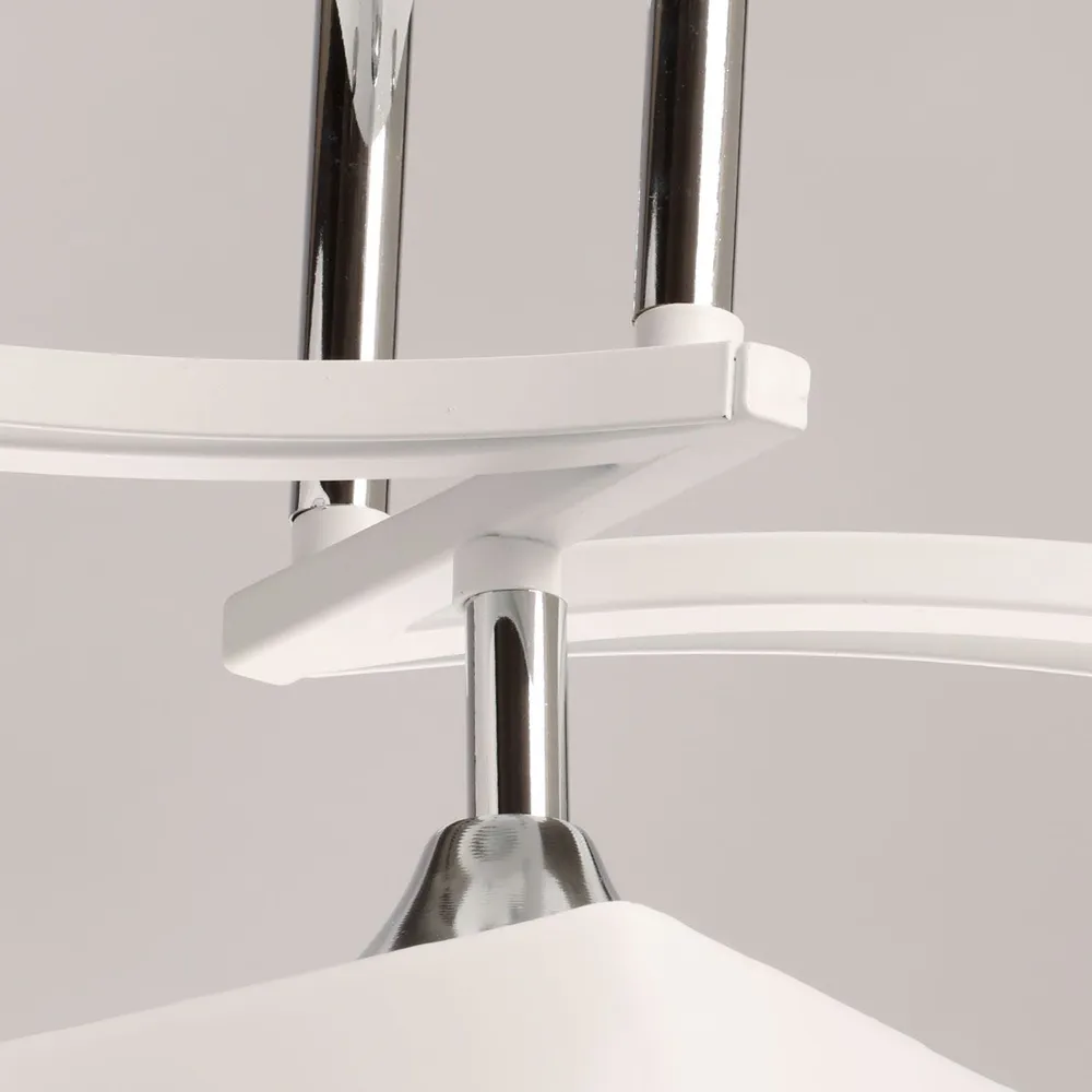 Небольшая подвесная люстра привлекает лаконичным цветовым решением и оригинальной геометрией. Светильник оснащен тремя плафонами и в полной комплектации способен обеспечить освещение на площади до 9 кв. м. Люстра оформлена в современном стиле, также будет уместна в стиле хай-тек, неоклассика и ар-деко.Основание подвесного светильника - металлическое, окрашенное в белый цвет и цвет глянцевого хрома. Гальваническое покрытие, а также порошковая краска, используемые при изготовлении люстры потолочной, устойчивы к механическим повреждениям и выгоранию. Рожки люстры подвесной закреплены на планке, напоминающей вытянутый зигзаг.