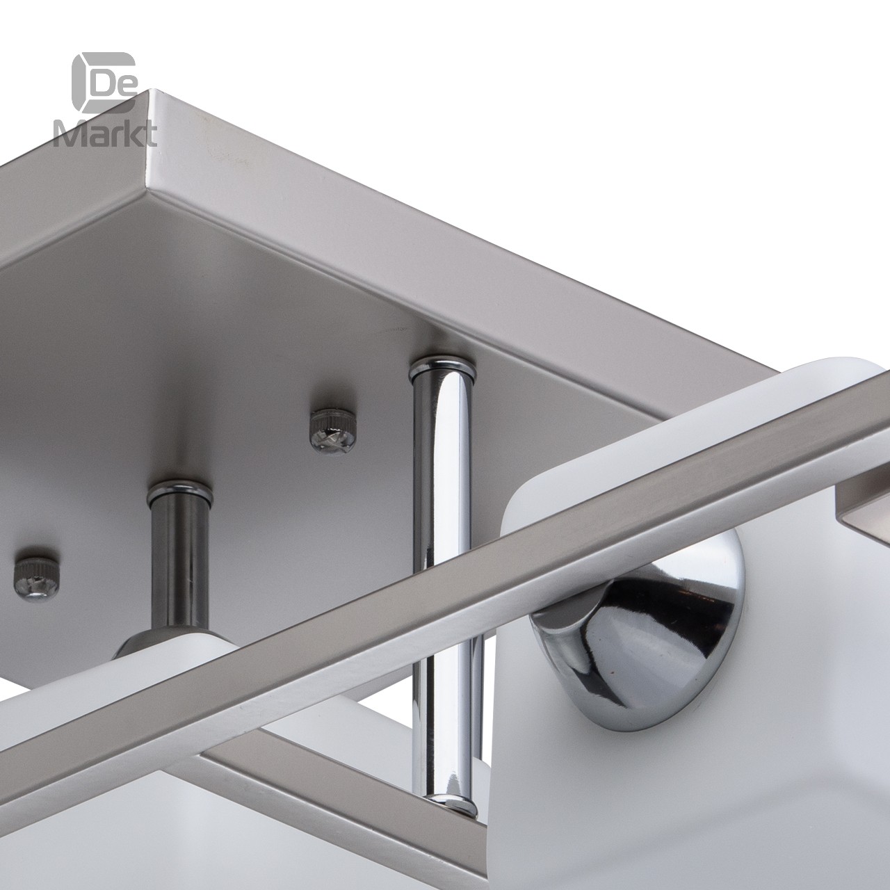 Люстра из коллекции «Тетро» - это сочетание смелых дизайнерских решений и чётких форм. Основание из металла выглядит необыкновенно стильно благодаря оригинальному оттенку с эффектом перламутра. Оно выполнено в двух комбинациях: холодный оттенок хрома в сочетании с декоративными элементами из хромированного металла и тёплый золотистый оттенок с декоративными элементами из металла цвета французского золота, оба варианта придают особый шарм композиции. И завершают эту математически точную модель квадратные плафоны из матового белого стекла. Прекрасный тандем модных оттенков, необычного сочетания линий и форм украсят любой современный интерьер.Преимущества модели