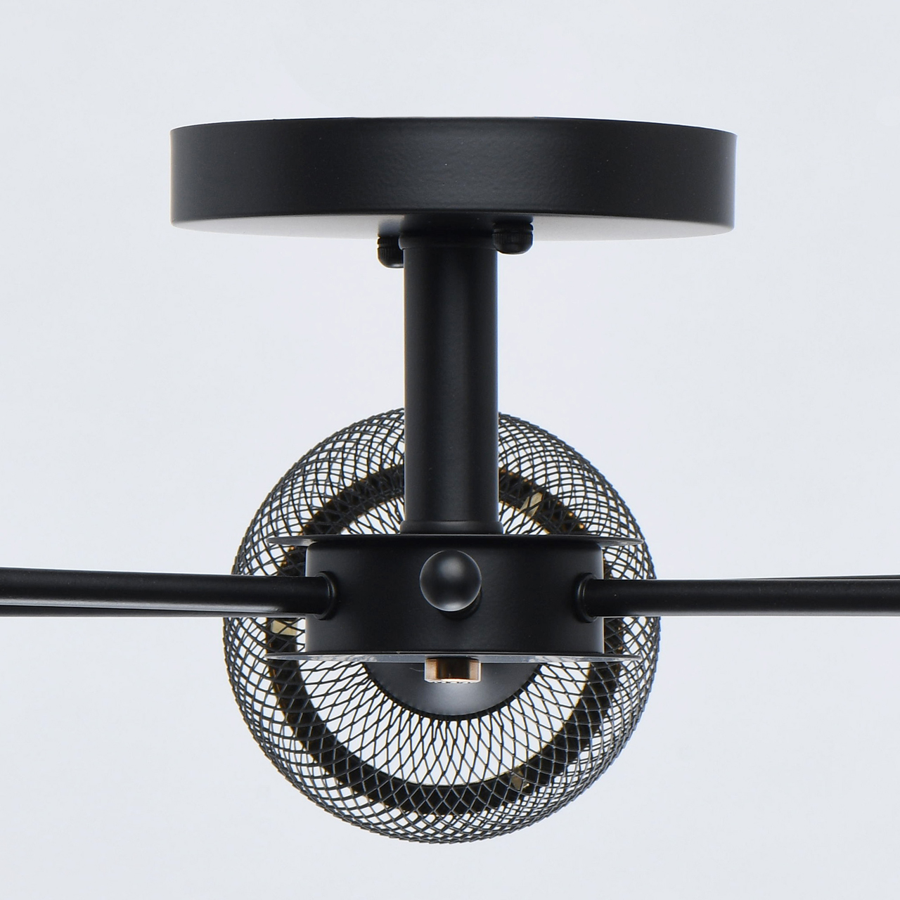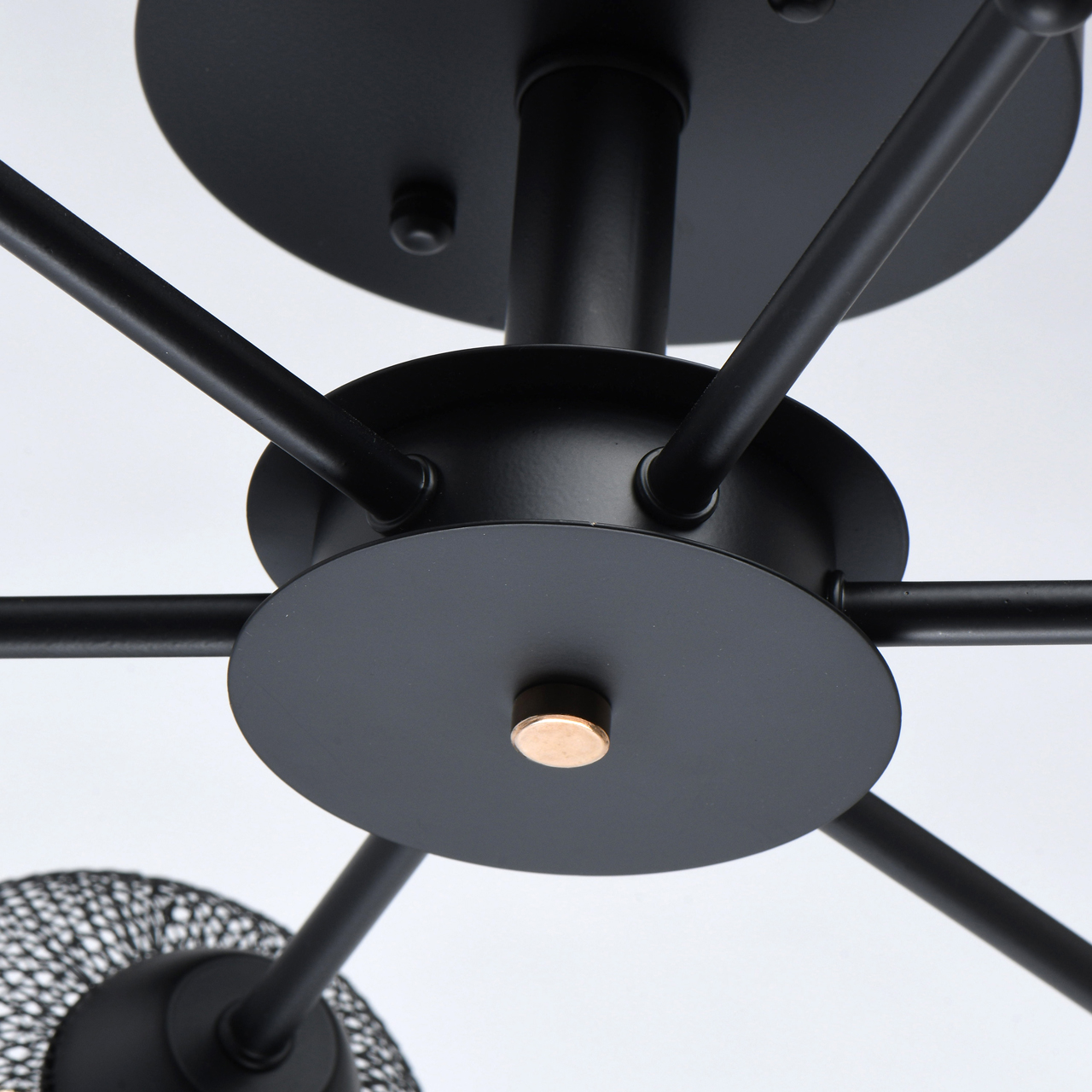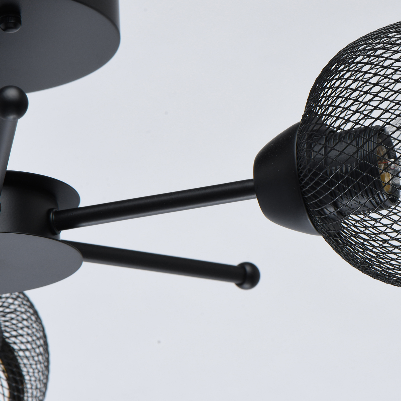 Дизайн-идея в контрасте цветов и фактур поверхностей поддержана темными патронами ламп. Компактная высота идеальна для стандартных потолков. Плафоны из декоративной сетки c золотым кантом затейливым узором рассеивают свет. Заменяемые источники света удобны в эксплуатации.Стилевые решения интерьера