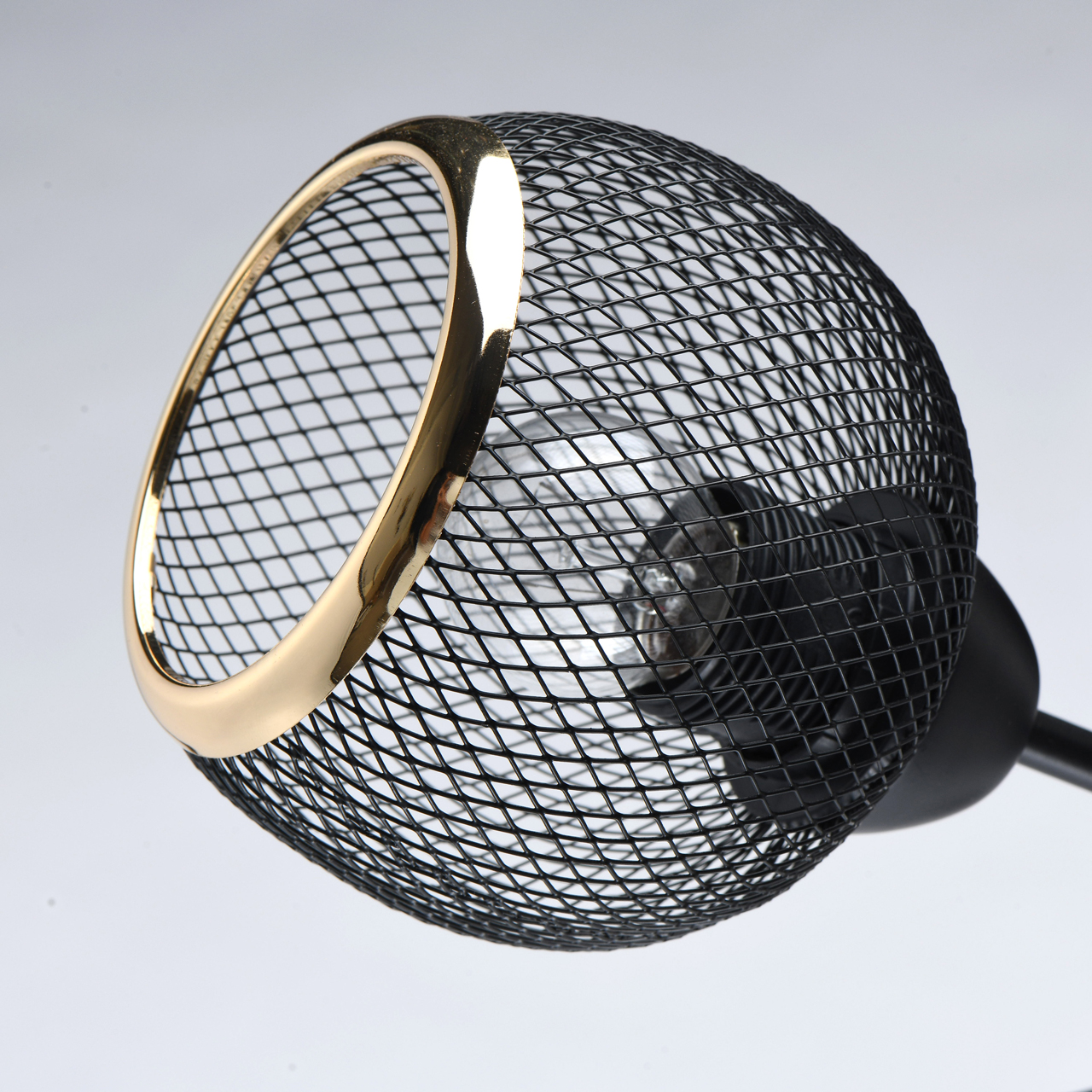 Основание светильника выполнено из металла и окрашено в черный цвет. Плафон выполнен в виде сетки. Край плафона отделан металлическим кантом, гальванизированным в цвет золота.Тип помещения