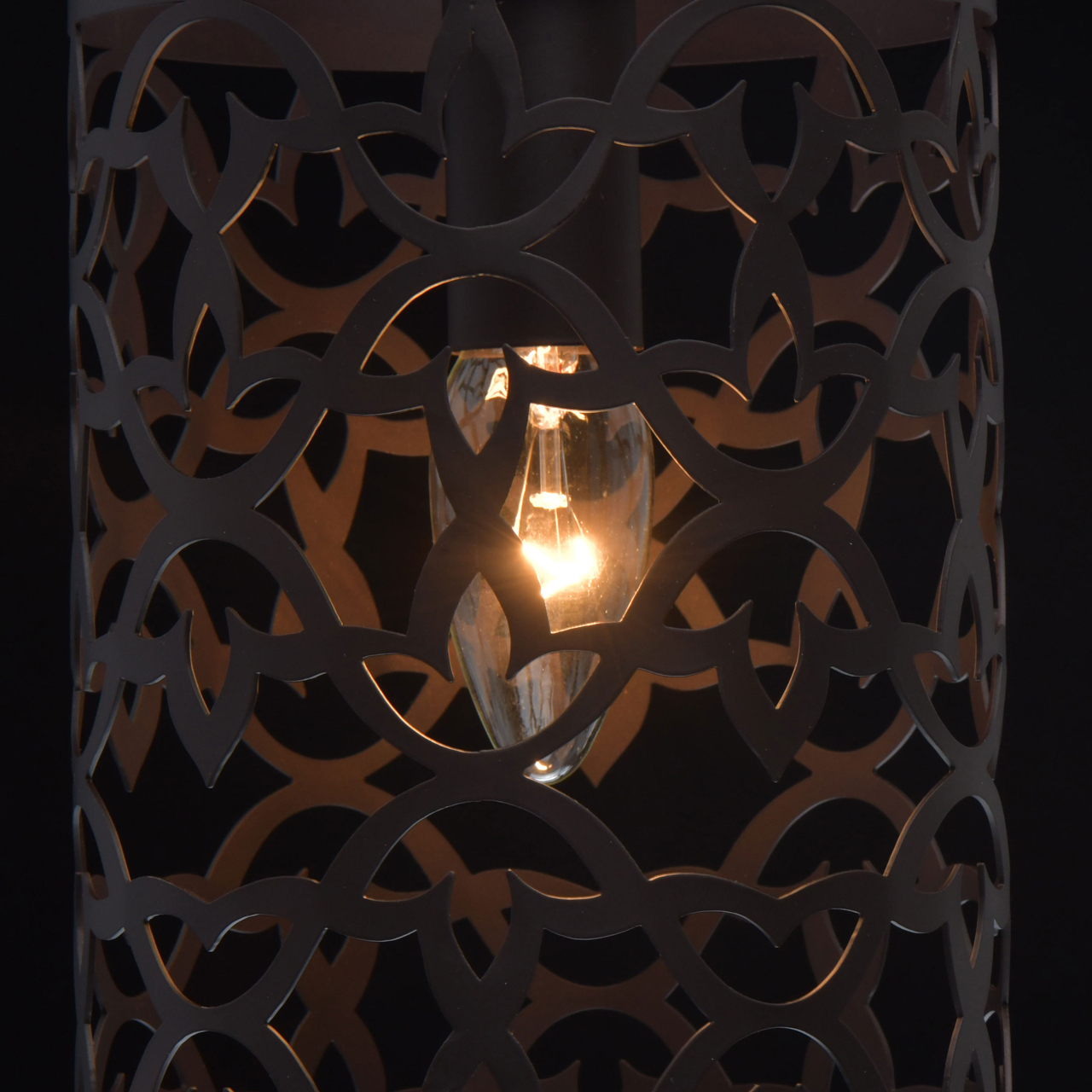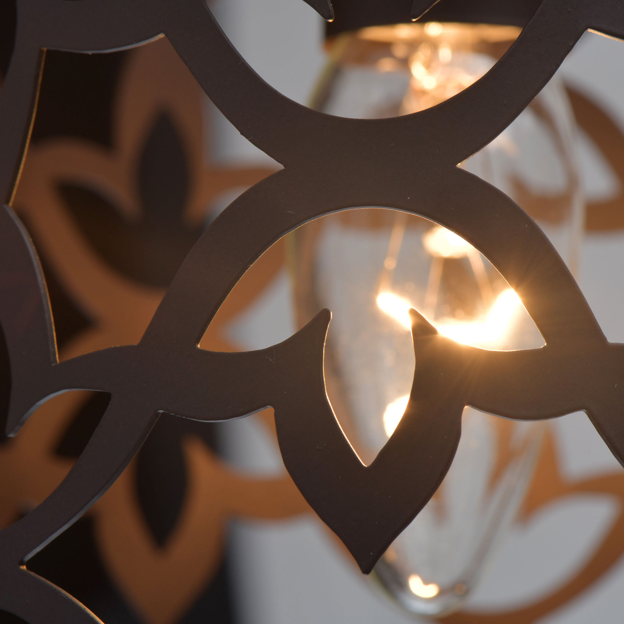 Металлический плафон с ажурным орнаментом добавляет ценности светильнику. Увеличенная длина цепи до 2 м удобна для прикроватной подсветки. Трендовый кофейный оттенок. Полная семья под задачи общего и зонального освещения. Традиционные источники света удобны в замене и использовании.Стилевые решения интерьера