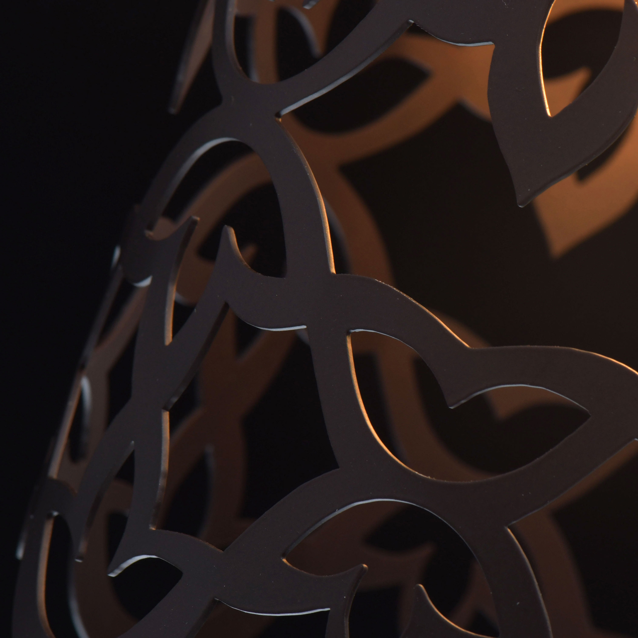 Основание светильника выполнено из металла и окрашено в цвет кофе. Плафон декорирован орнаментом, выполненным по технологии лазерной резкиТип помещения