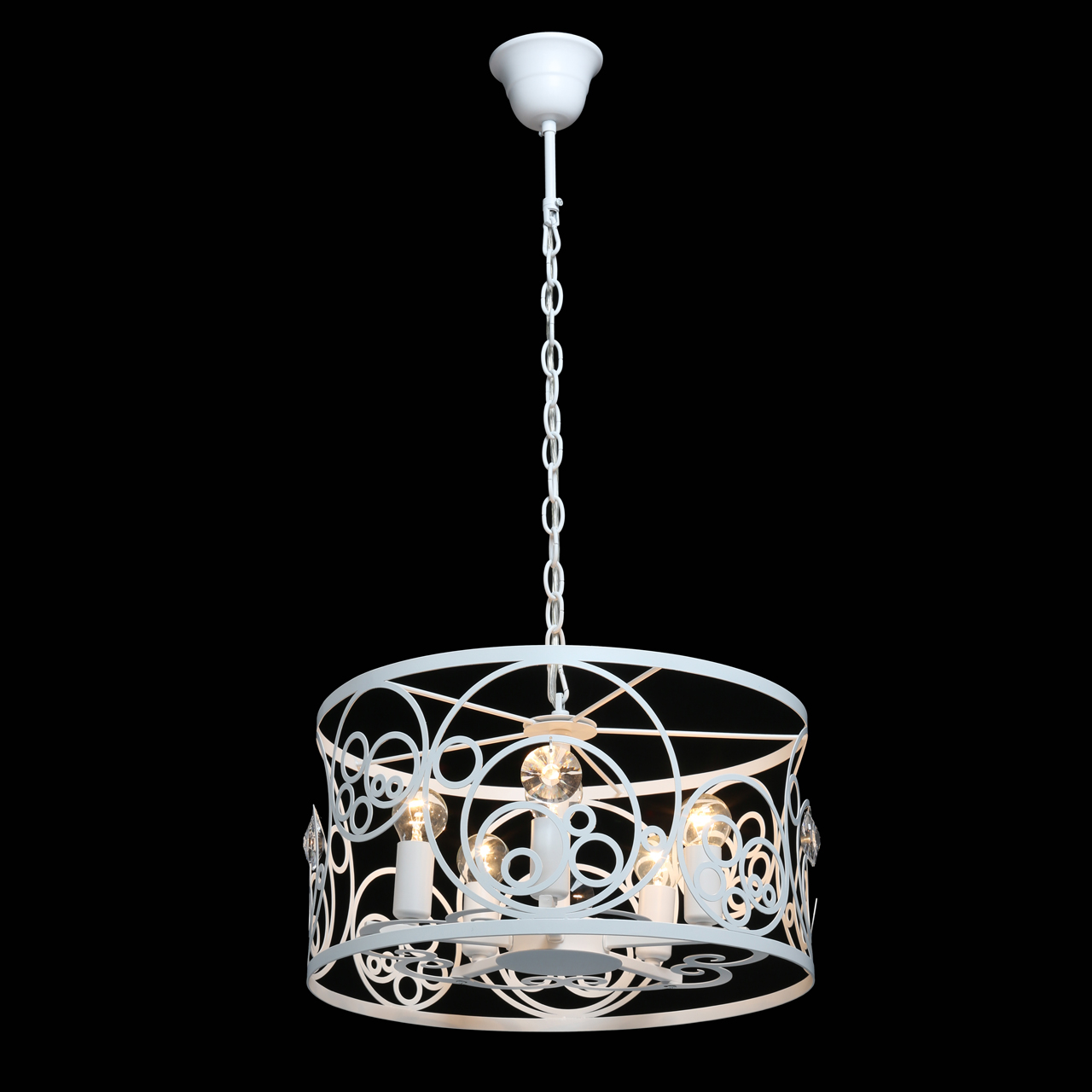 Трендовый дизайн в стиле художественной ковки. Узор теней за счет фигурного плафона и дополнительного ажурного элемента внизу плафона. Хрустальный декор Увеличенная длина цепи подвеса 2 м. Варианты диаметров двух размеров на 1 и 5 лампочекСтилевые решения интерьера