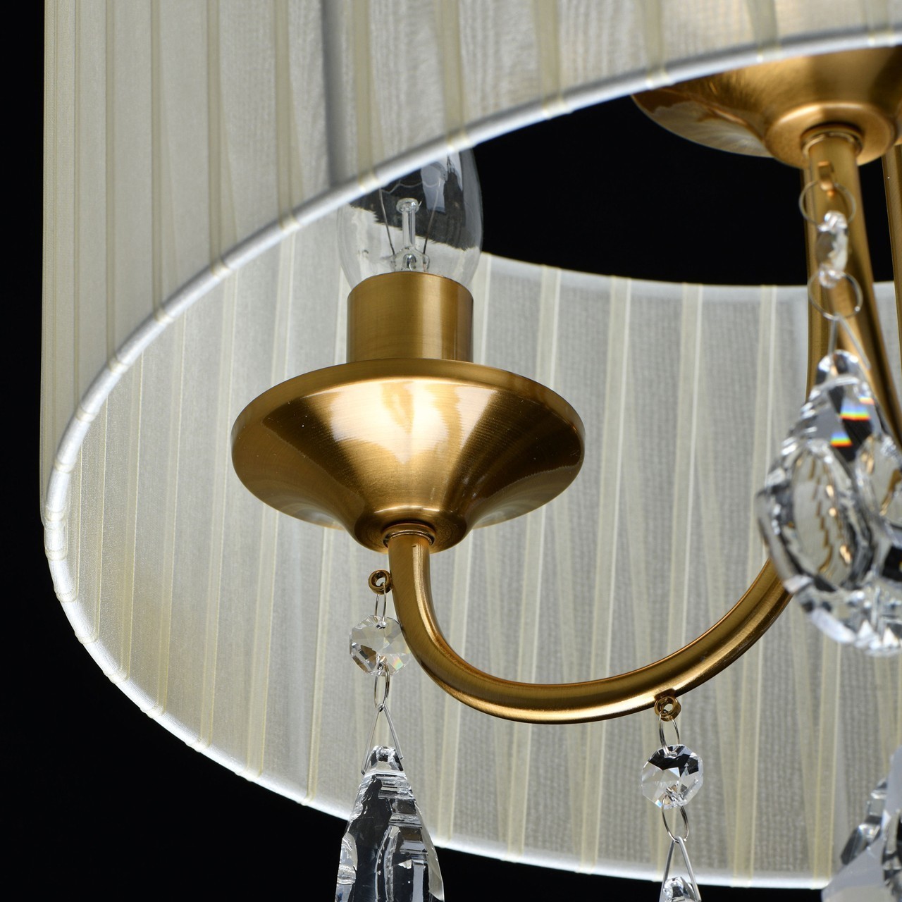 Основание/металл/золото Плафон/органза/бежевый Декор/хрусталь/прозрачныйТехнология производства