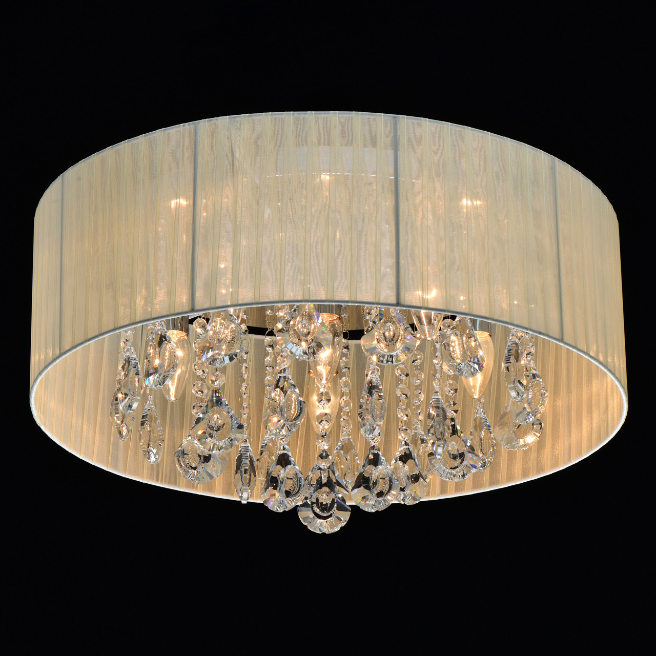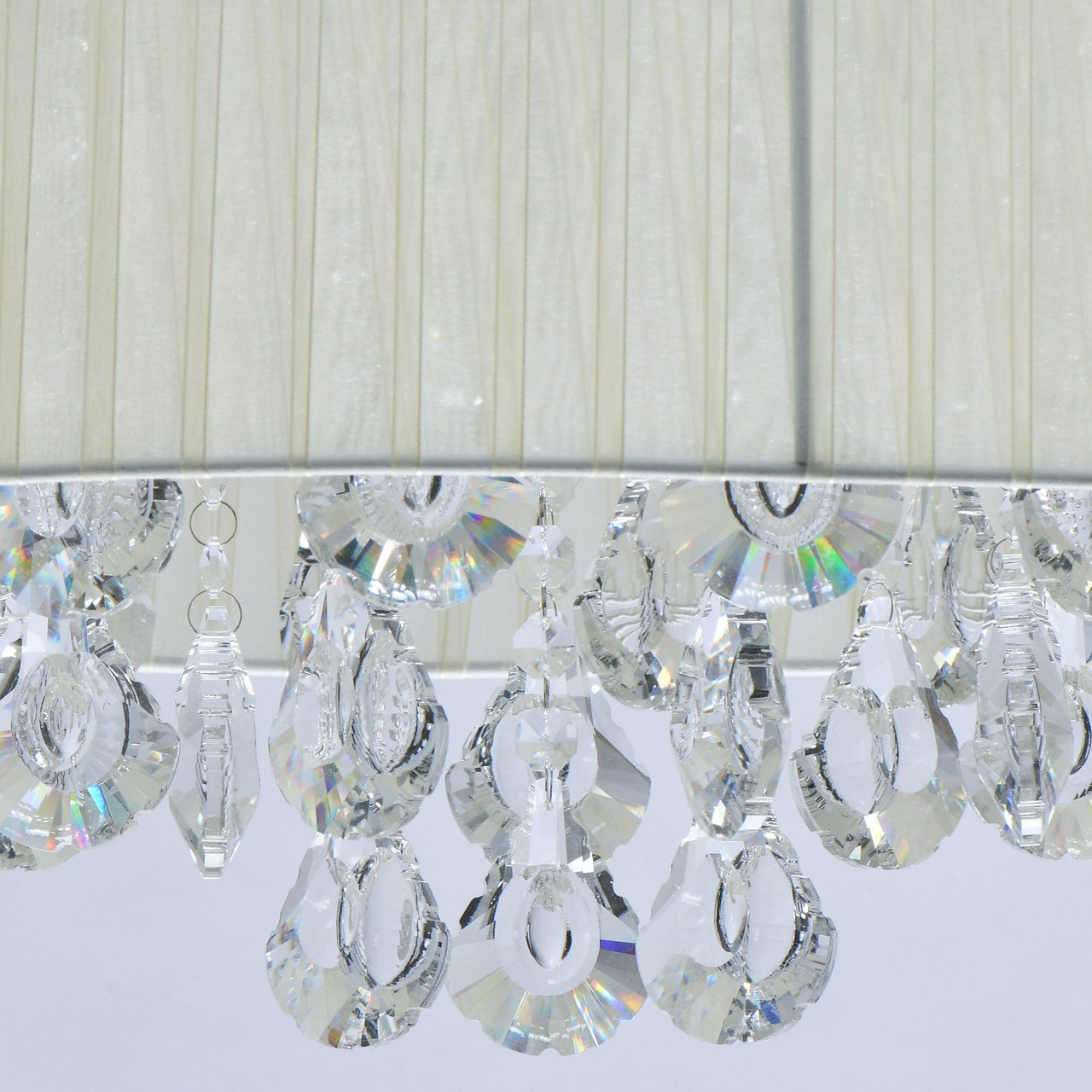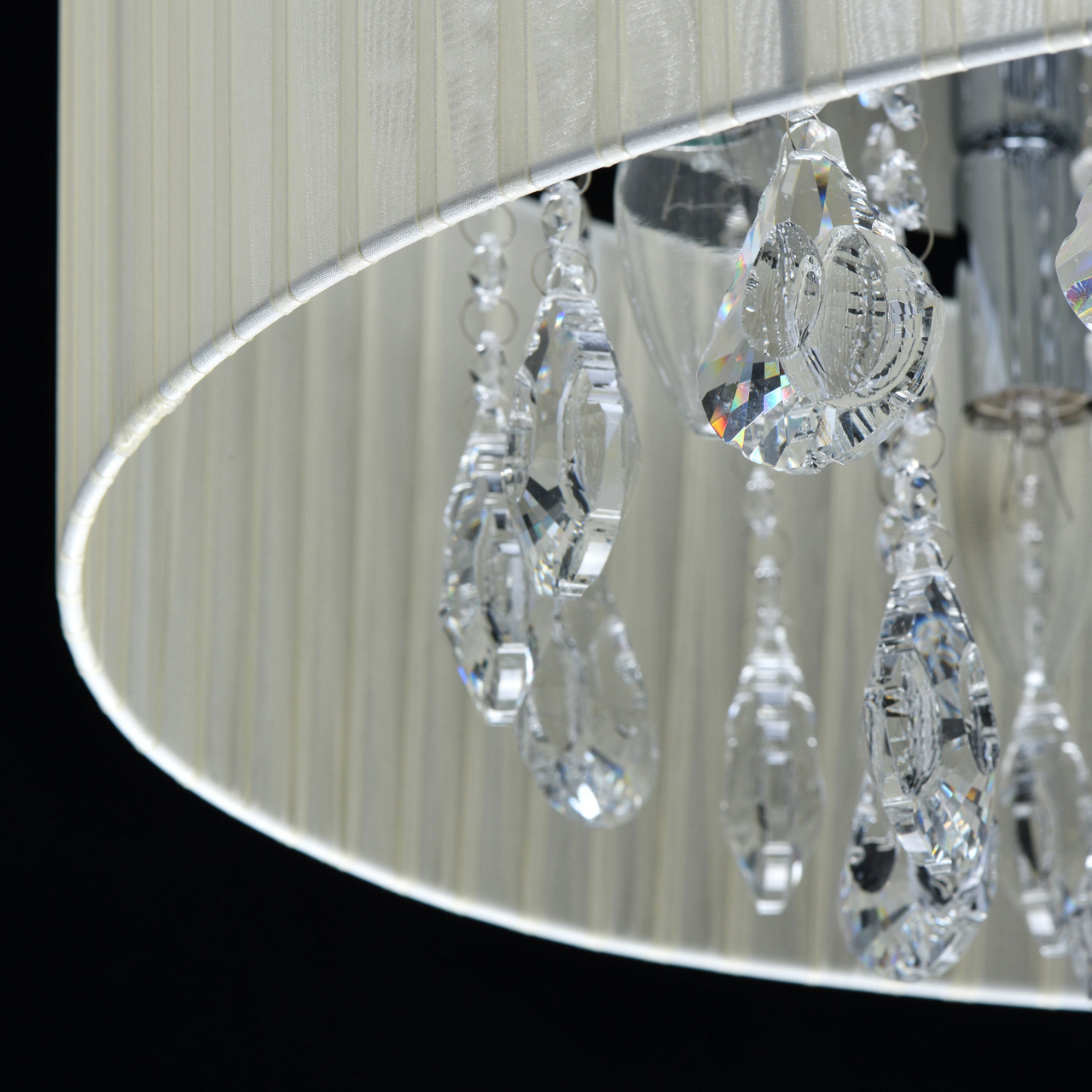 Основание/металл/хром Плафон/органза/бежевый Декор/хрусталь/прозрачныйТехнология производства