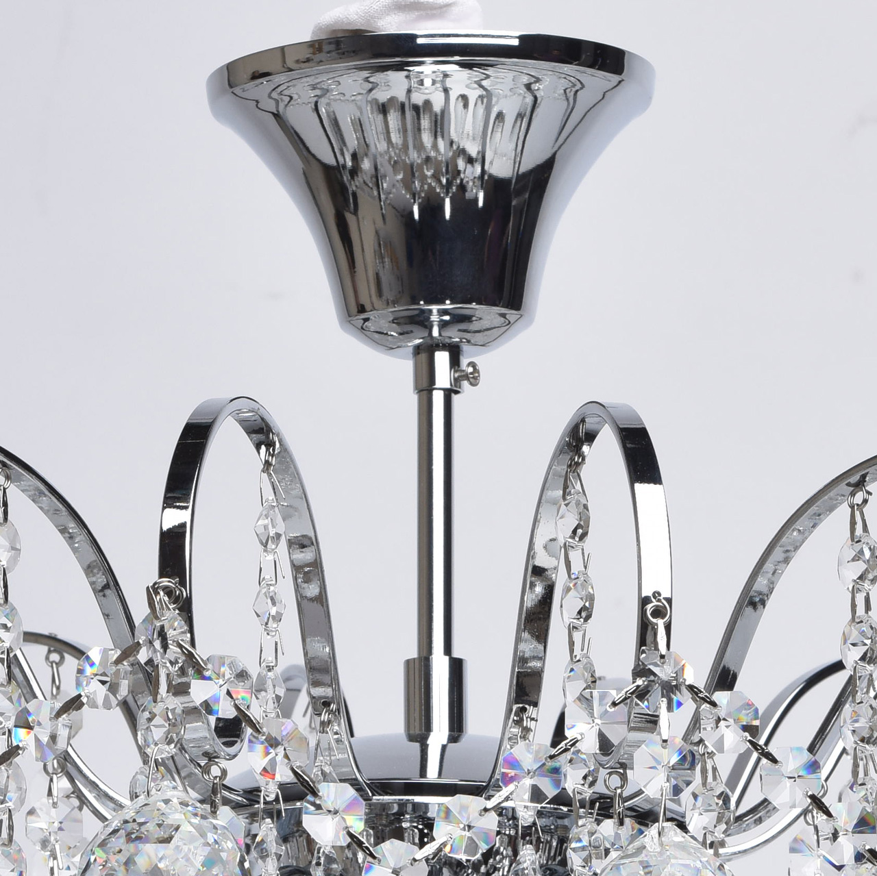 Металлическое основание цвета хрома, декоративные подвески из хрусталяТехнология производства