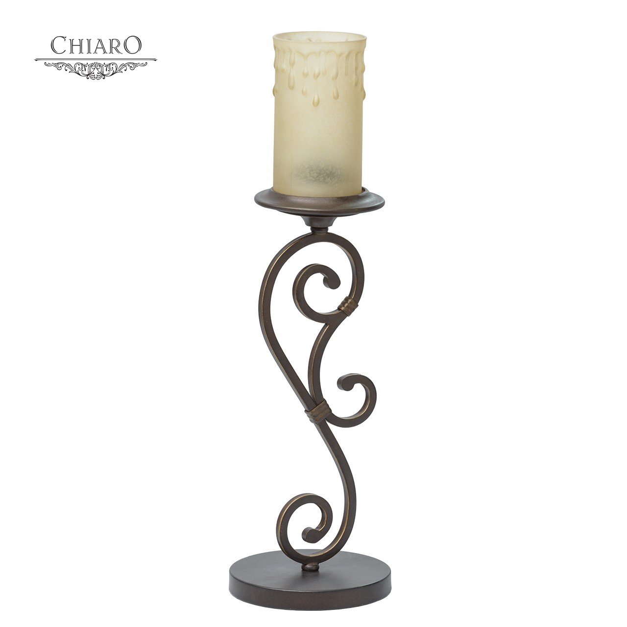 Парадный облик светильника Айвенго формируется благодаря роскошному кованому основанию, окрашенному в цвет крепкого кофе. На металлическом витом основании возвышается стеклянный плафон из матового стекла с искусно воссозданным эффектом восковых капель. Излучаемый приглушённый свет от светильника Айвенго делает обстановку в помещении камерной, привнося в интерьер индивидуальность средневекового стиля.Преимущества модели