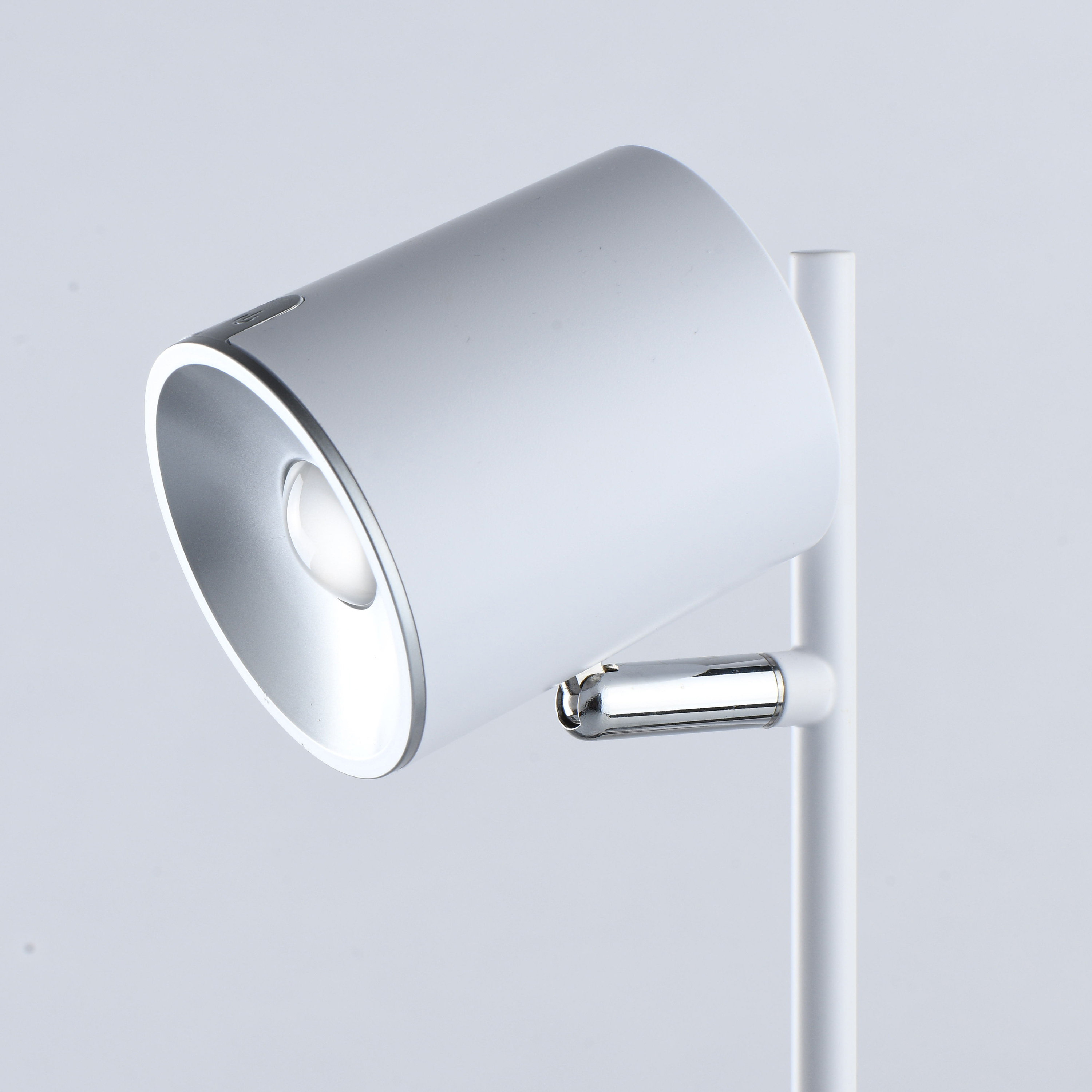 Монохромный матовый белый цвет светильника является трендом зонального освещения. Сенсорный выключатель на корпусе удобен в эксплуатации. Кастомизация плафона, благодаря наклону и повороту можно выбрать удобное направление светового потока. Три режима яркости LED настраивают уровень зонального освещения. Увеличенная высота лампы полностью освещает рабочую зону.Стилевые решения интерьера