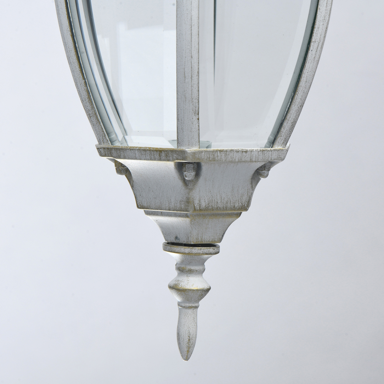 Классическая форма белого цвета с патиной придает античный характер освещению. Высокий показатель IP44 защиты от влажности и пыли. Стеклянные фрагменты плотно соединены, образуют геометричный плафон. Система отвода конденсата гарантирует долгий срок службы источников света. Декоративные элементы в старинном стиле создают дополнительный акцент. Полная семья из бра, подвеса, столба на 1 и 2 лампы для комплексного освещения ландшафта.Стилевые решения интерьера