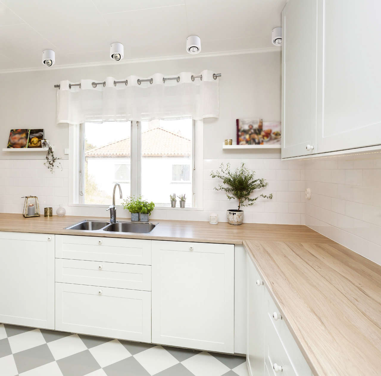 Встроенные LED последнего поколения экономят электроэнергию и обеспечивают яркий направленный световой поток.Поворот плафона 360 градусов регулирует направление светового потока. Популярный белый цвет универсален для большинства поверхностей.