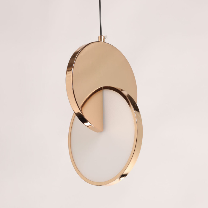 Контрастное сочетание черного и золотого цвета делает подвес акцентом в дизайне интерьера. Геометрия пересечения окружностей плафонов придает подвесу индивидуальность и актуальный дизайн. Матовый акрил мягко рассеивает свет. Материал плафона отводит тепло и продлевает срок службы светодиодов. Качественные светодиоды экономичны и безопасны.Металлическое основание подвеса окрашено в черный цвет. Корпус плафона выполнен из сплава алюминия и гальванизирован в цвет золота. Светодиодный источник света закрыт матовым акрилом.