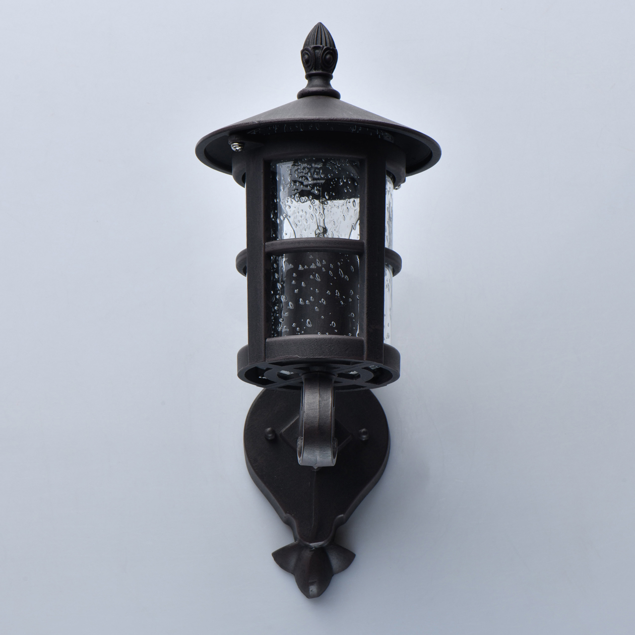 Степень защиты IP44 защищает светильник от проникновения влаги и инородных тел. Порошковое окрашивание корпуса устойчиво к корозии Оригинальное фактурное стекло, имитирующее дождевые капли, придает светильнику индивидуальность. Большая семья позволяет комплексно осветить экстерьер загородного дома.Стилевые решения интерьера