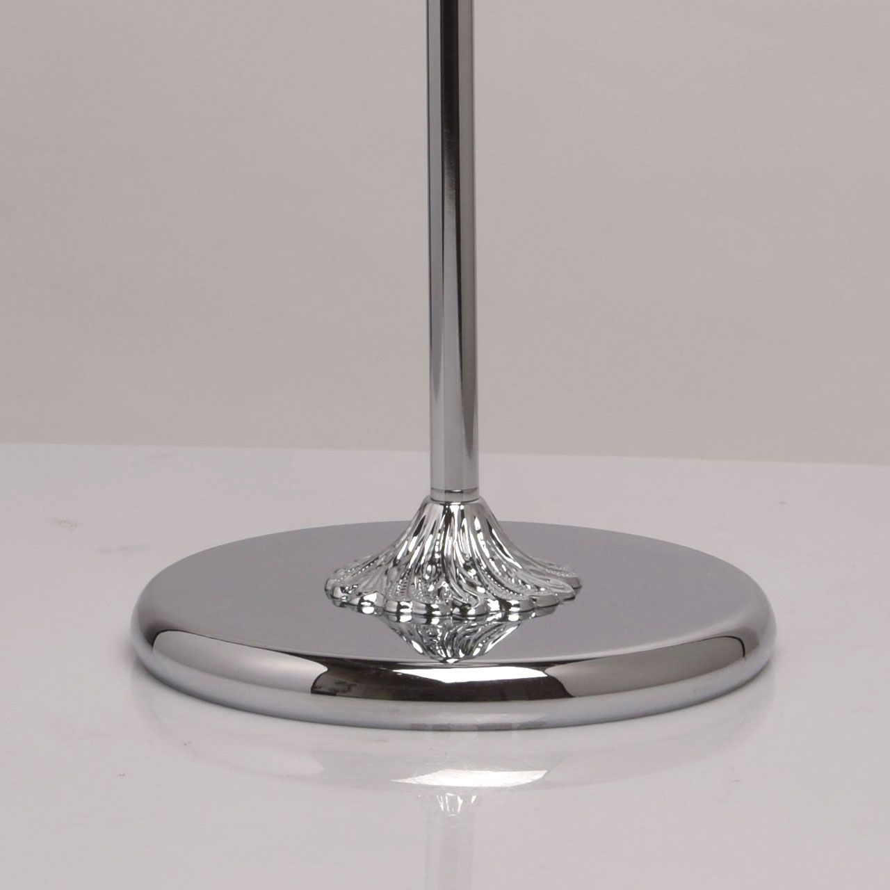 Основание: металл, гальванизировано в цвет хрома. Абажур: двухслойный текстильный абажур белого цвета с термостойким акрилом внутри. Декор: декоративная розетка из металла в цвет основания выполнена по технологии прессования.Тип помещения