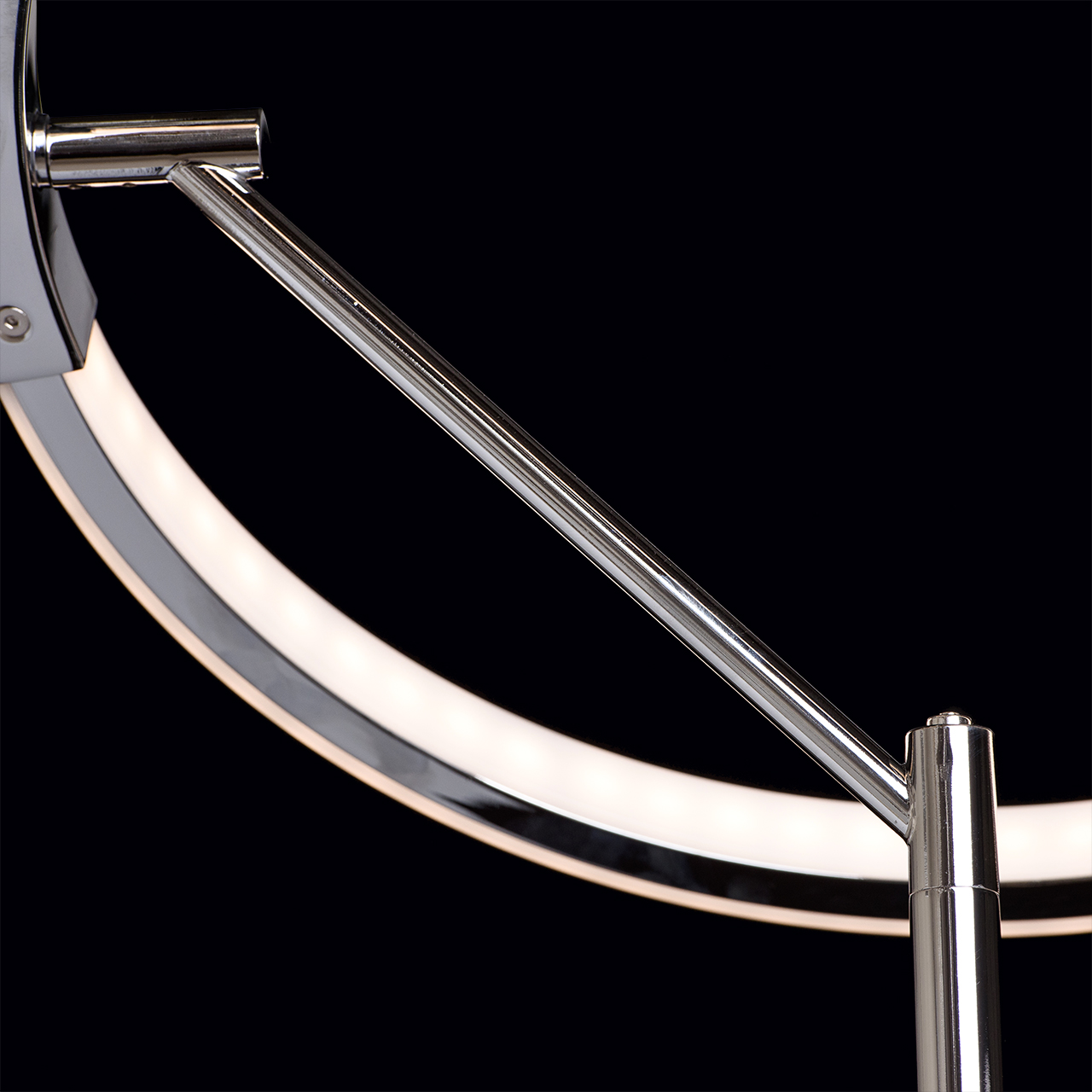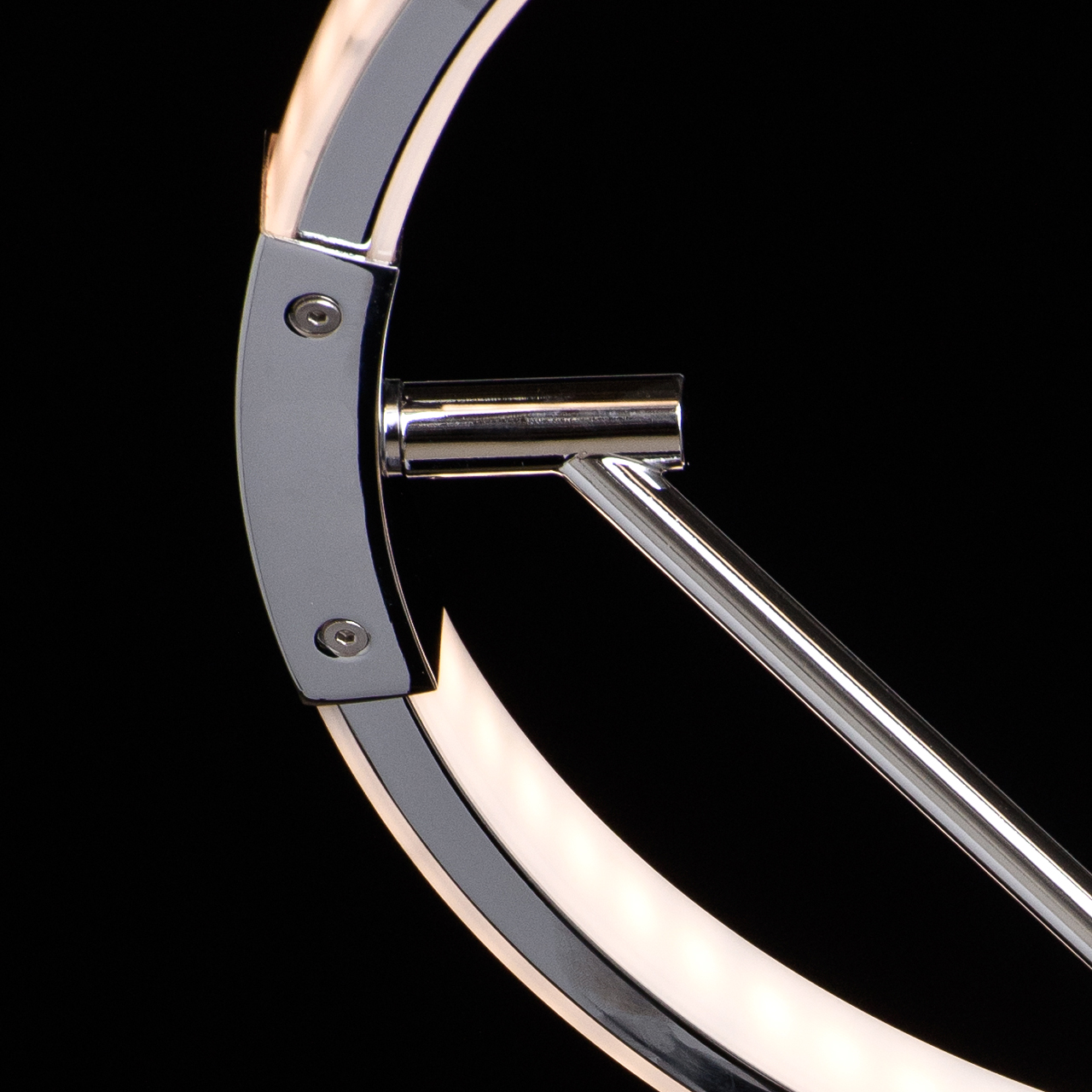 Создать в интерьере «настоящую» солнечную систему из светящихся колец разного уровня и диаметра – это реально с семьей светильников из коллекции «Платлинг». Хромированное основание из металла гармонично переходит в плафон в форме кольца из серебристого алюминия и акрила. Источником света выступает светодиодная лента. Кроме того, светильник оснащен спотовой системой, благодаря чему можно менять направление и угол наклона светового кольца, создавая необычные композиции, а также регулировать направление светового потока. Ультрасовременный минималистичный дизайн и хорошее техническое оснащение подарит возможность по-настоящему разнообразить интерьер.Преимущества модели