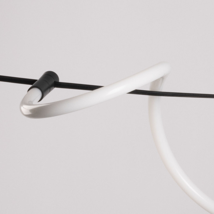 Контрастное сочетание белого и черного эффектно выделяет светильник на потолке. Гибкий силиконовый плафон изящно изгибается, создавая эффект легкости и воздушности. Трендовая форма плафона становится арт объектом в дизайне интерьера. Светодиодные источники света экономичны и безопасны в эксплуатации.Основание светильника выполнено из сплава алюминия с цинком и окрашено в черный цвет. Гибкий плафон выполнен из белого силикона.