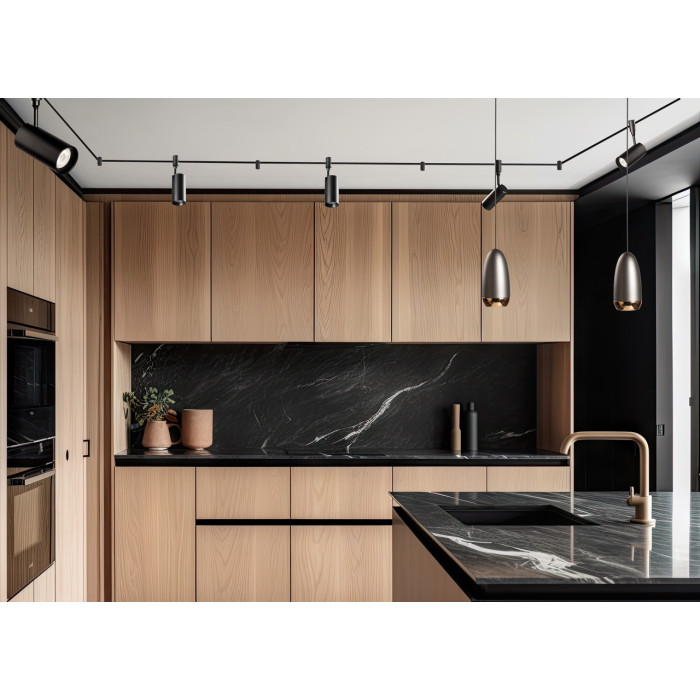 Насыщенный серый цвет плафона придает подвесу элегантности и стиля. Гармоничное сочетание серого и золотого делает подвес арт объектом. Светодиодные источники света экономичны и безопасны в эксплуатации.Основание трек-подвеса выполнено из сплава алюминия и окрашено в черный цвет. Плафон выполнен из сплава алюминия с цинком, окрашен в серый цвет и гальванизирован в цвет золота. Светодиодный источник света закрыт прозрачным акрилом.