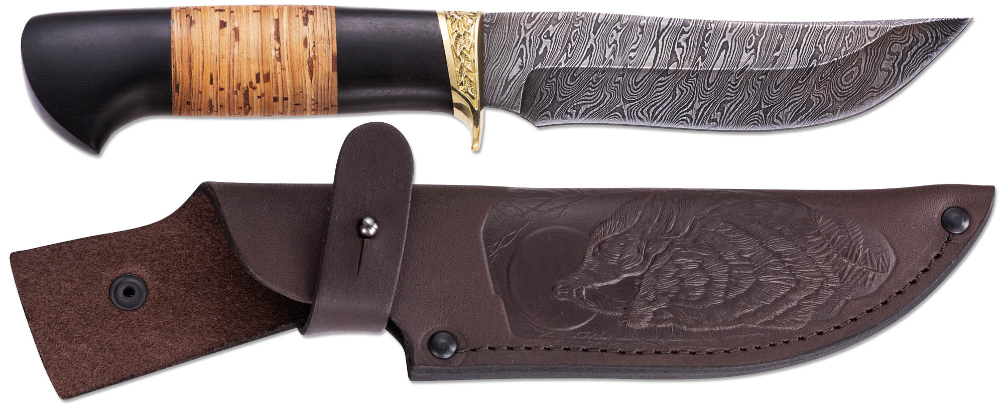 - материал рукояти граб, береста