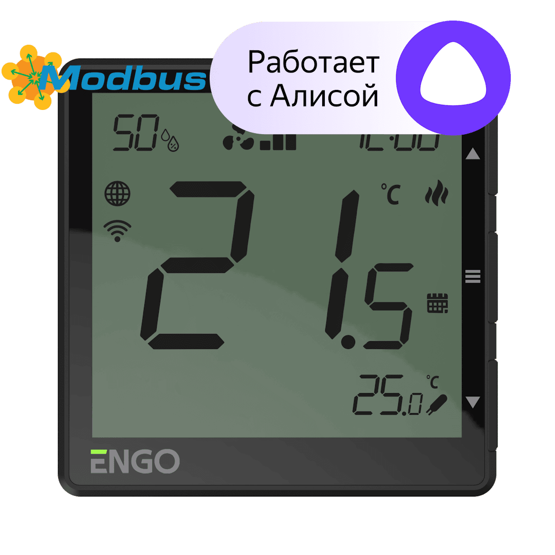 Универсальный терморегулятор WIFI (MODBUS), 220 В, встраиваемый, черный ENGO (EFAN-230B)