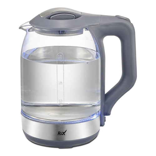 RIX RKT-1832G – вместительный стеклянный чайник с удобными пластиковыми крышкой и ручкой для переноски, исключающими риск получения ожога. Электрические характеристики чайника позволяют использовать его в домах со слабой проводкой, например на даче, при этом его мощности достаточно для того, чтобы вскипятить 1,8 литра воды всего за несколько минут. Корпус из термостойкого стекла максимально нейтрален по отношению к воде, скрытый нагревательный элемент – надёжен и долговечен. Функция автоматического отключения при закипании или недостаточном количестве воды гарантирует безопасное использование прибора и экономию электроэнергии.Характеристики