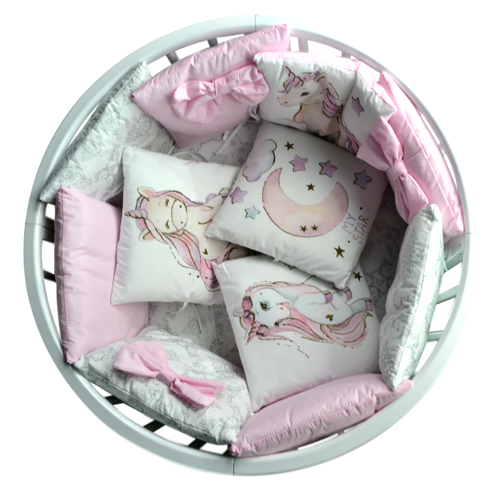 Комплект в кроватку 18 предметов, сатин/бязь С2 единорог, розовый