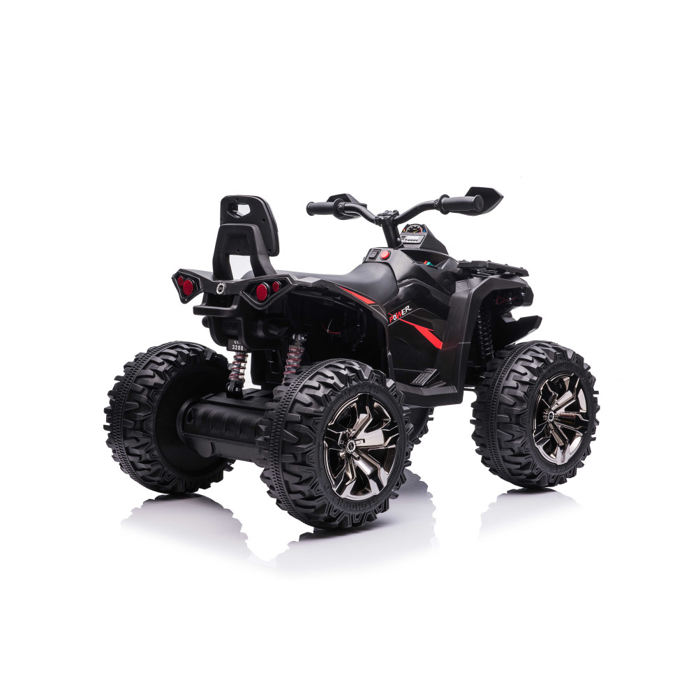 Запуск квадроцикла осуществляется простым нажатием кнопки, а управление осуществляется с помощью удобной педали газа. Для еще большего удовольствия, устройство оснащено светодиодными огнями передних фонарей, которые не только выглядят эффектно, но и могут быть отключены. Задние амортизаторы обеспечивают комфорт даже на неровной поверхности, а резиновые колеса из EVA гарантируют отличное сцепление с дорогой.