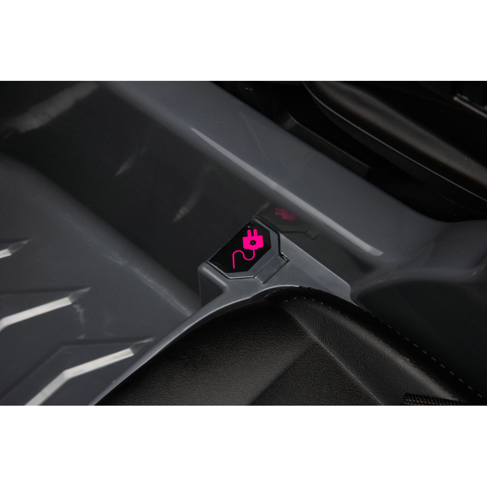 Управление становится еще более увлекательным благодаря педали газа и удобному рулю с функцией клаксона и встроенными музыкальными эффектами. Приборная панель также предлагает различные музыкальные настраиваемые эффекты, а разъемы для подключения USB и AUX позволяют ребенку наслаждаться любимой музыкой во время поездки.