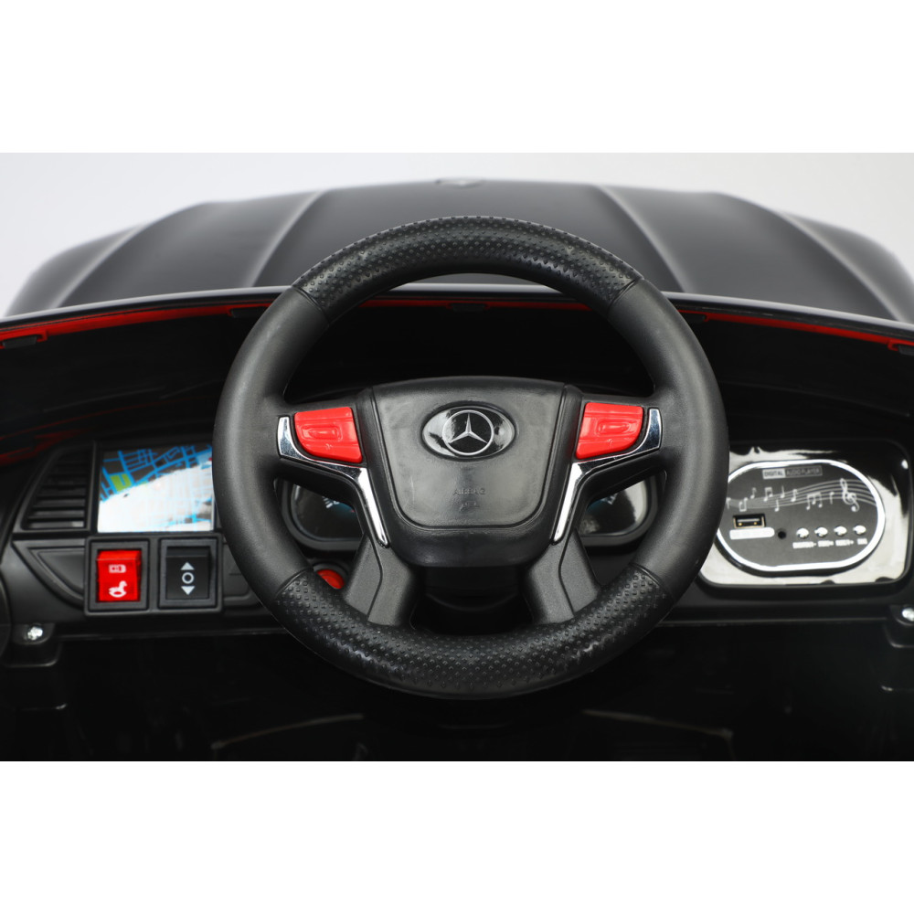 Электромобиль Mercedes Benz GLS 6569 оснащен светодиодными огнями на передних и задних фонарях, что делает его заметным и стильным в любой обстановке. В комплект входят аккумулятор и зарядное устройство, а также пульт дистанционного управления, который работает по Bluetooth с радиусом действия до 30 метров, позволяя родителям контролировать движение автомобиля.