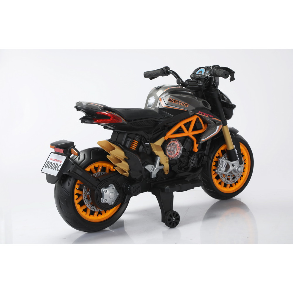 Откройте двери в мир приключений с детским электромотоциклом Moto Augusta 800RC! Этот стильный и мощный мотоцикл, оборудованный полностью резиновыми колесами EVA, предназначен для юных гонщиков с максимальной нагрузкой до 30 кг. Его производительность впечатляет: два двигателя по 35W и аккумулятор на 12V/10Ah дарят возможность развивать скорость до 7 км/ч. В мотоцикле есть две скорости вперед и одна назад, что делает поездку безопасной и увлекательной.Moto Augusta 800RC легко заводится с ключа, а управление осуществляется с удобной ручки газа на руле, где также предусмотрены музыкальные эффекты для создания еще более веселой атмосферы. Педаль тормоза и подножка добавляют функциональности и безопасности, а комбинированное сиденье обеспечит комфорт во время поездок. Индикатор заряда батареи всегда подскажет, когда нужно подзарядить мотоцикл, а вход для USB дает возможность подключать устройства.