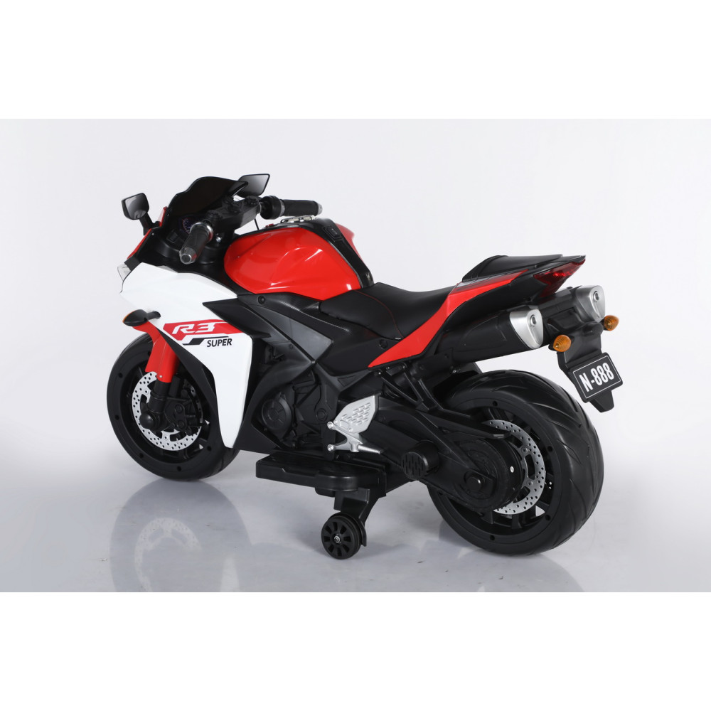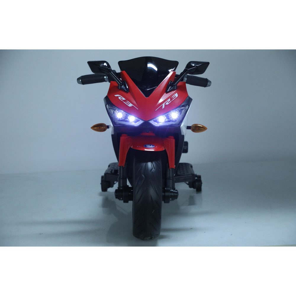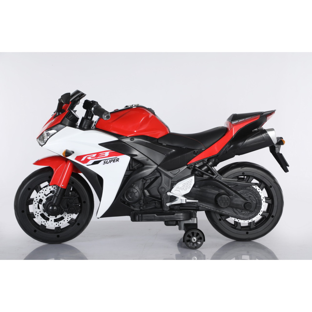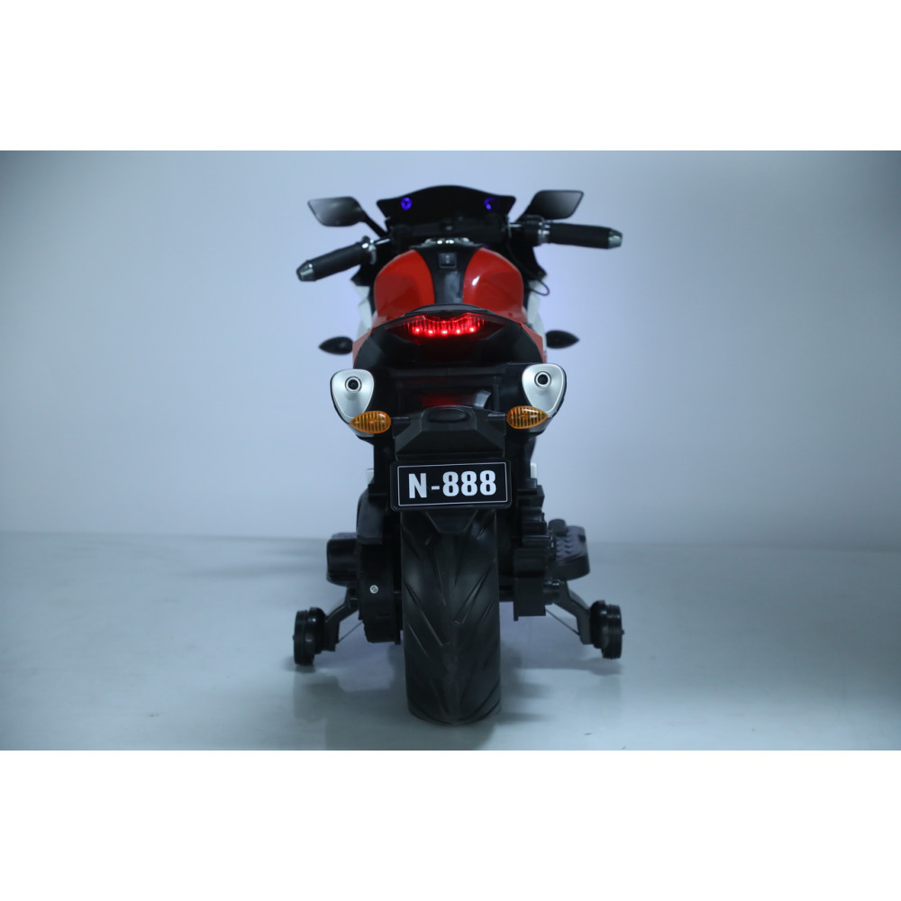 Для обеспечения безопасности предусмотрена педаль тормоза, которая помогает в любой момент остановить мотоцикл. Кожаное сиденье добавляет комфорта во время езды, а удобный руль с музыкальными эффектами на корпусе сделает каждую поездку более веселой и запоминающейся. Кроме того, разъем для подключения MP3 и вход для USB позволяют ребенку наслаждаться любимой музыкой во время поездки.