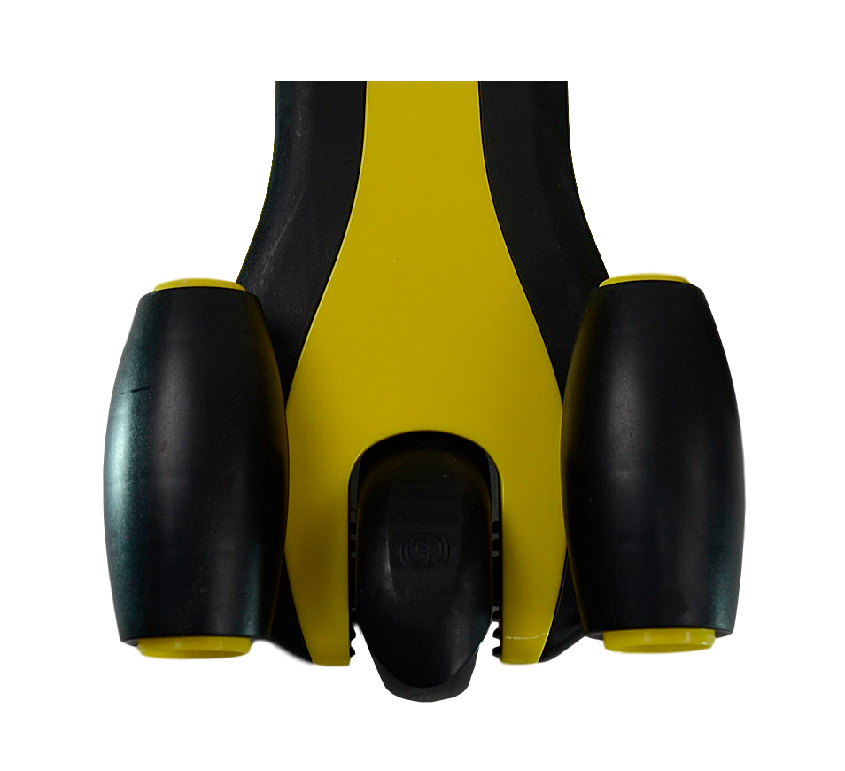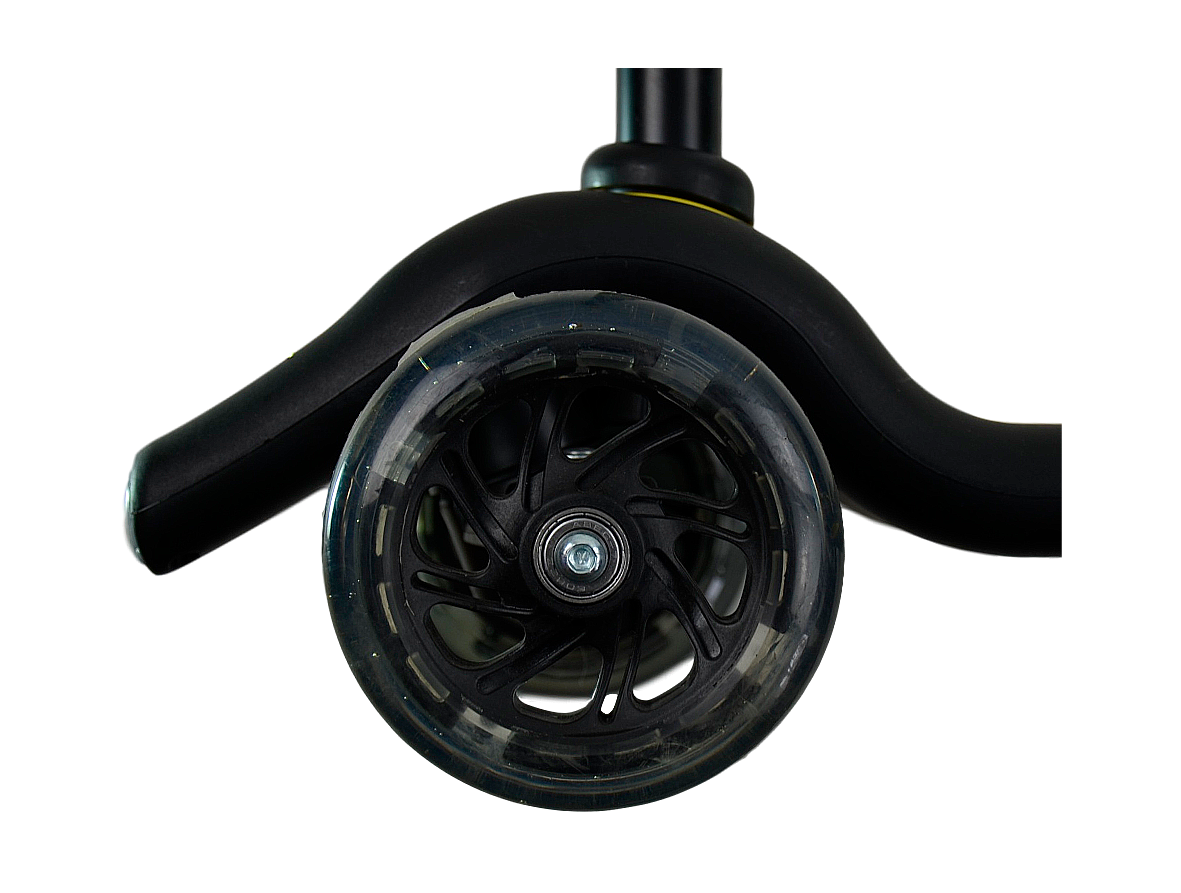 Устойчивая платформа покрыта антискользящим материалом, а ее ширина позволяет разместить на себе обе ноги во время катания. Контроль над ездой и безопасность обеспечивает надежный ножной тормоз. Руль самоката регулируется, тем самым позволяя построиться под рост ребенка, выбрав оптимальную высоту. Для транспортировки и компактного хранения ручку можно снять.