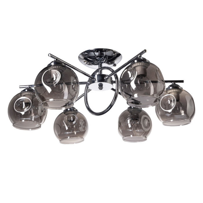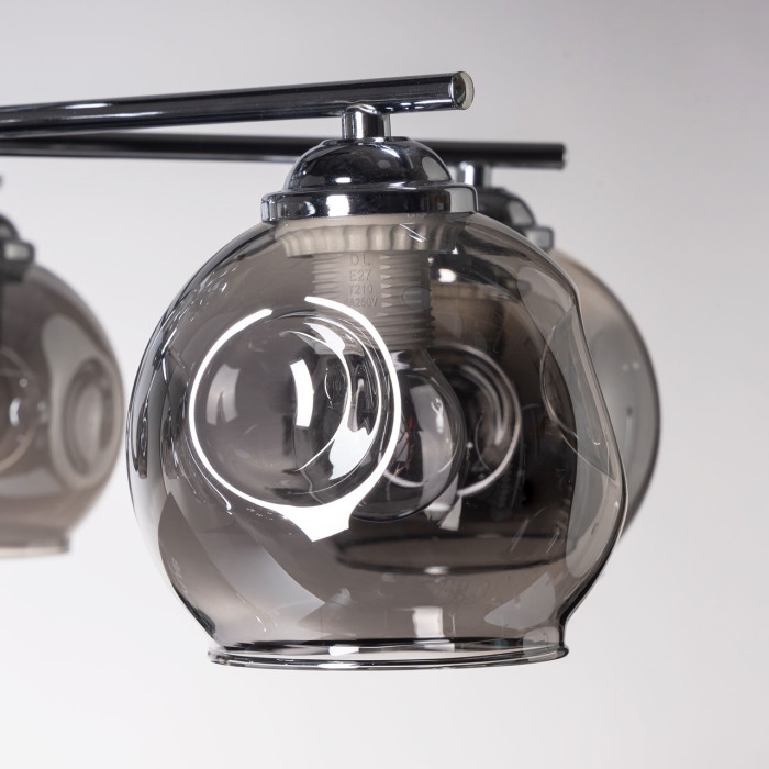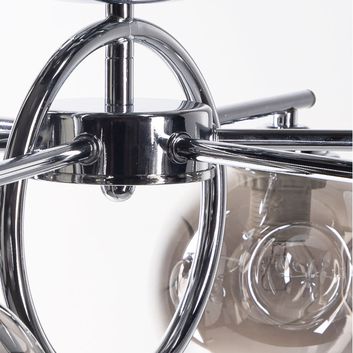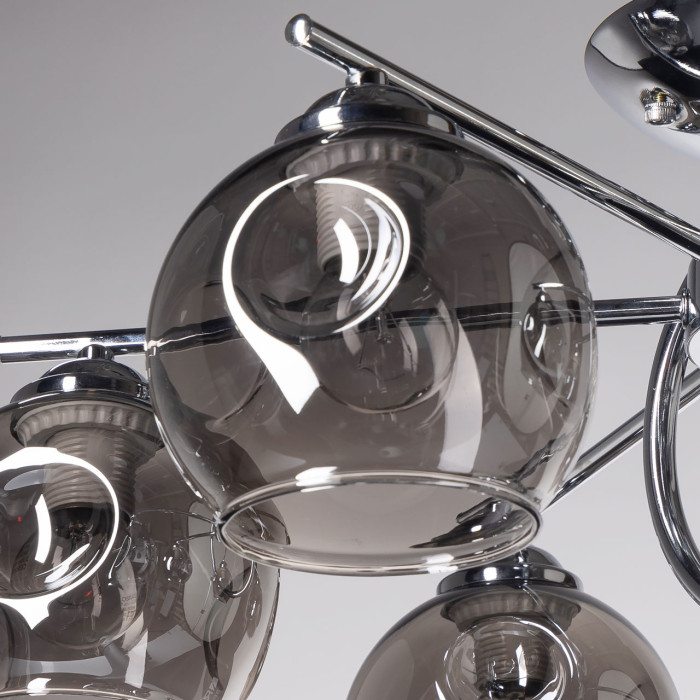 Современный дизайн в стиле хай-тек. Цвет плафонов дымчатый металлик мягко рассеивает свет. Компактный размер потолочной люстры позволяет сохранить пространство комнаты при стандартном потолке. Заменяемые источники света удобны в эксплуатации.Металлическое основание светильника гальванизировано в цвет хрома. Потолочная люстра декорирована выдувными вручную стеклянными плафонами. Плафоны гальванизированы в дымчатый металлизированный цвет.