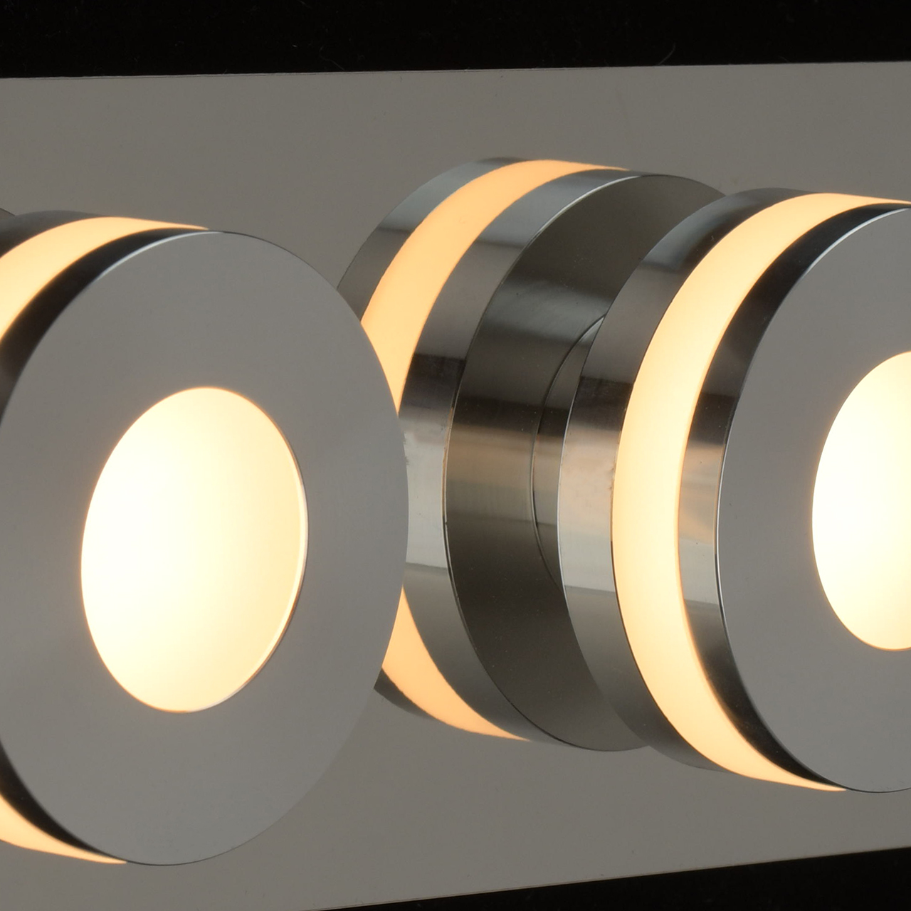 Основание выполнено из металла и гальванизировано в цвет хрома. Корпус выполнен из металла, закрыт пластиной из нержавеющей стали отполированной до зеркального блеска. Плафоны: сплав алюминия, гальванизация в цвет хрома. Светодиодные источники света типа COB закрыты рассеивателями из белого матового акрила.Тип помещения