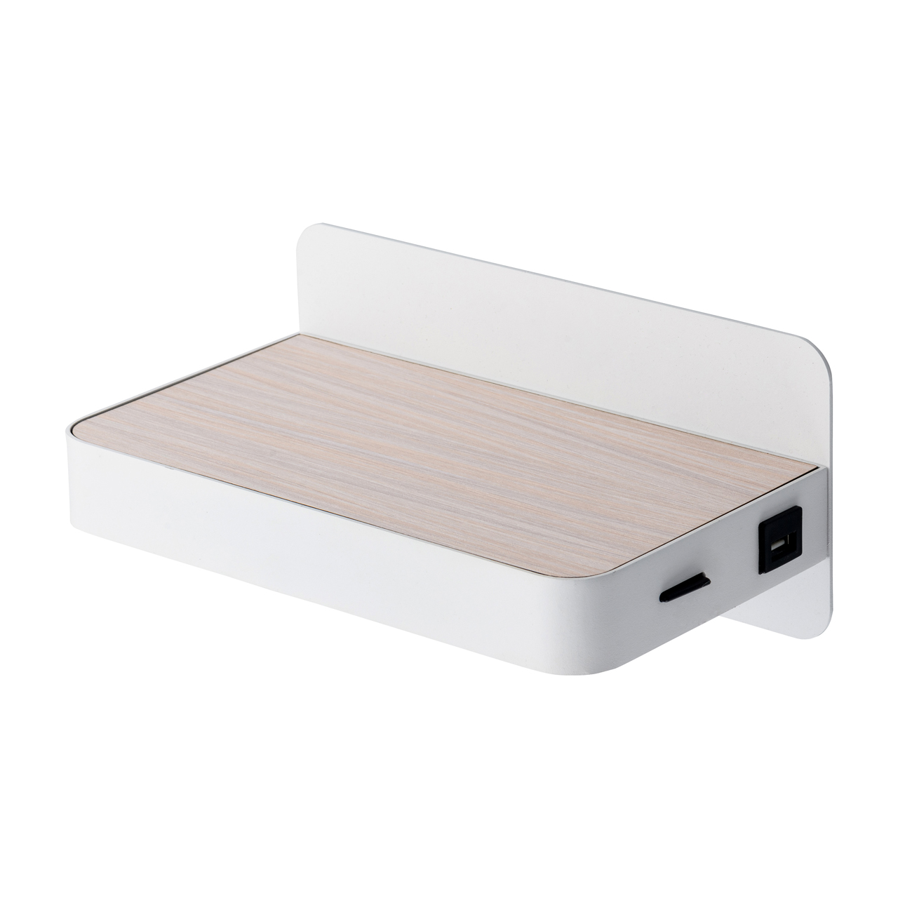 Современный дизайн в эко-цвете беленого дуба и белого. Оптимальная длина полки в качестве интерьерой подставки. Интерьерная полка с USB-портом 5V/2A удобна для зарядки устройств. Выключатель на корпусе управляет подсветкой на нижней стороне полки.Стилевые решения интерьера