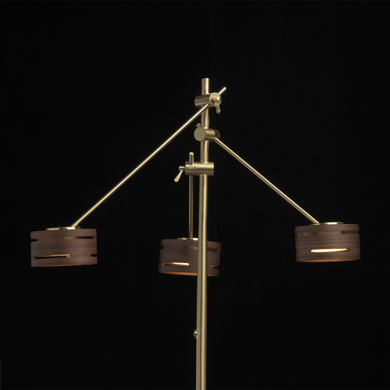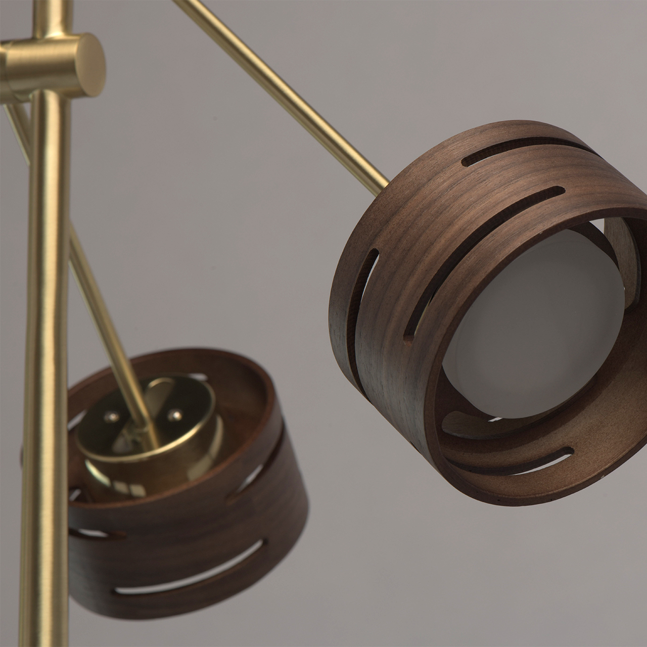 Стильный светильник-трансформер - признанный тренд в мире светодизайна. Металлическое основание модели представлено в двух цветовых вариациях: матового золота и матового никеля. Главная изюминка светильника - оригинальные абажуры из натурального дерева, с графичными прорезями, красиво преломляющими световой поток. Абажуры также выполнены в двух оттенках: светлого и темного дерева. В качестве источников света выступают светодиоды, скрытые под вставкой из матового акрила, мягко рассеивающей свет. Помимо этого, светильник отличается богатым функционалом: его плафоны оснащены спот системой, а рожки трансформирующейся системой крепления. Это позволяет леко менять направление светового потока и самую композицию светильника.Преимущества модели
